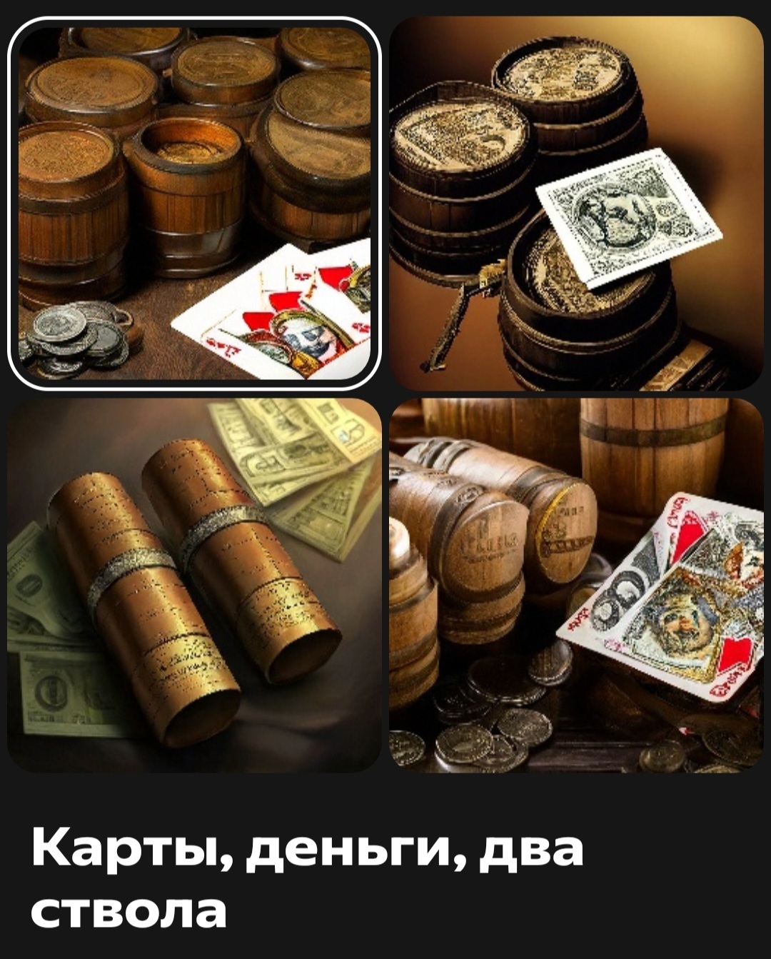 Игрался с нейросетью яндекса - "шедеврум". Вводил множество запросов, получал более-менее ожидаемые результаты, пока не ввёл в качестве запроса русскоязычное название одного хорошего фильма - "Карты, деньги, два ствола":