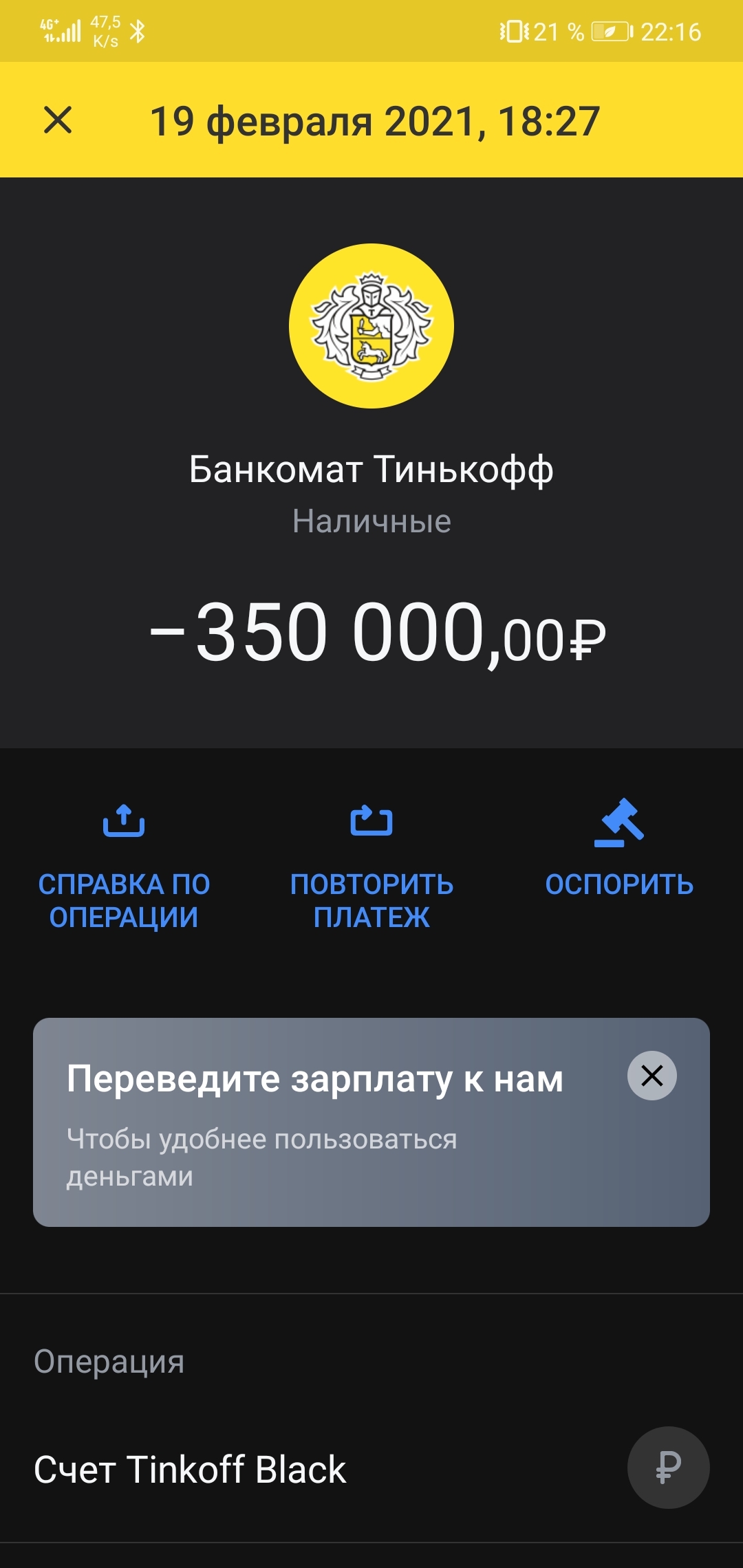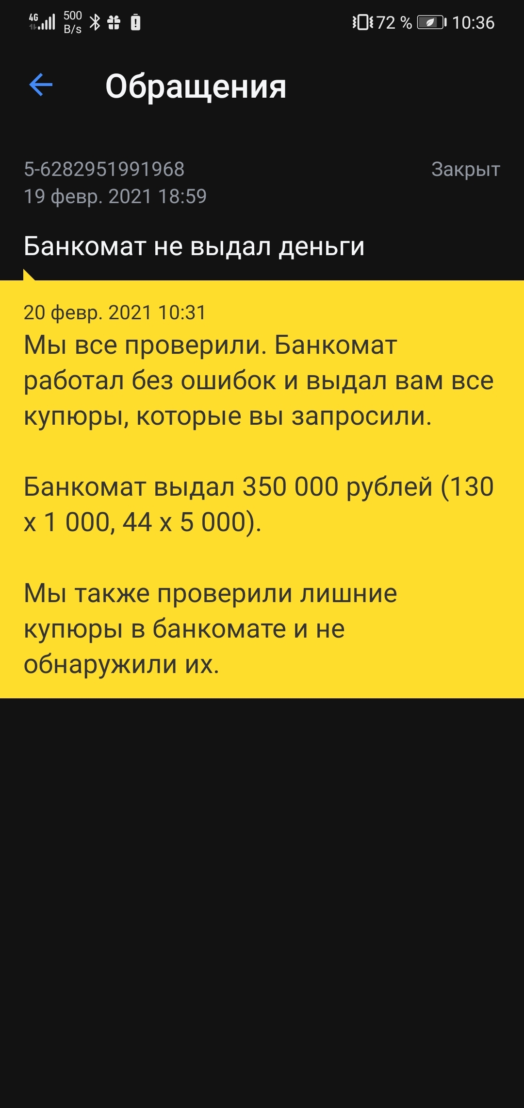 Вкратце : снимал в банкомате тинькова 350000, получил по факту 116000. Были претензии, но всё складывалось против меня