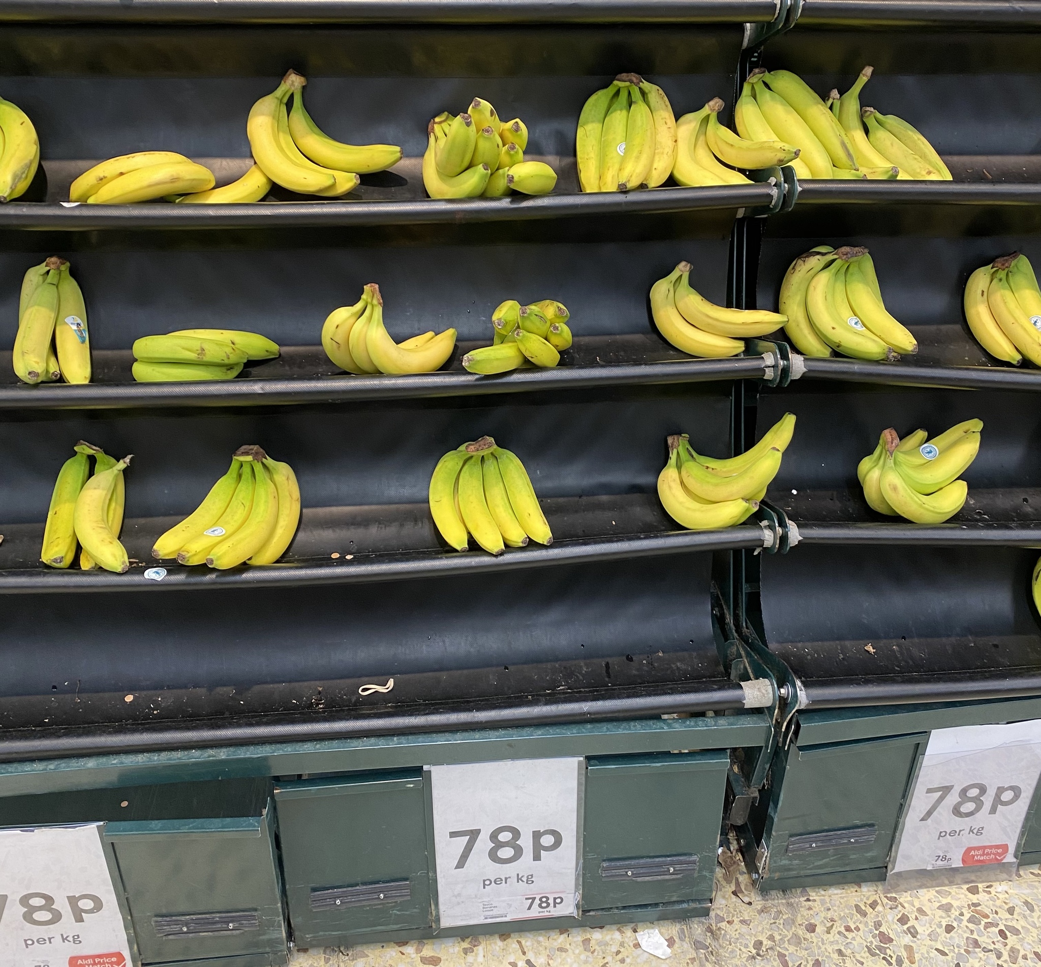 Бананы 54.8руб/кг. так как был вечер, полка почти пустая.