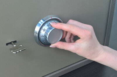 Сейф имеет замок с ключом и механический кодовый замок с лимбом.