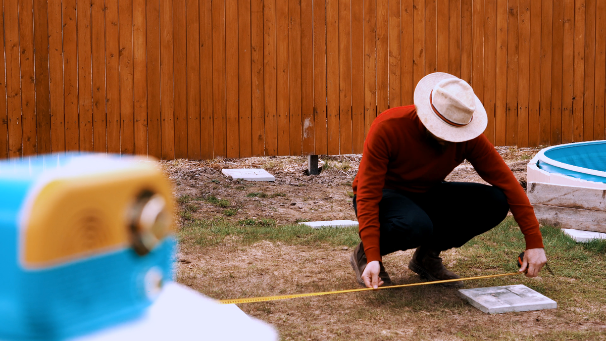 Поехали! Размечаю фундамент. Пролеты между опорами примерно 1,5-2 метра.