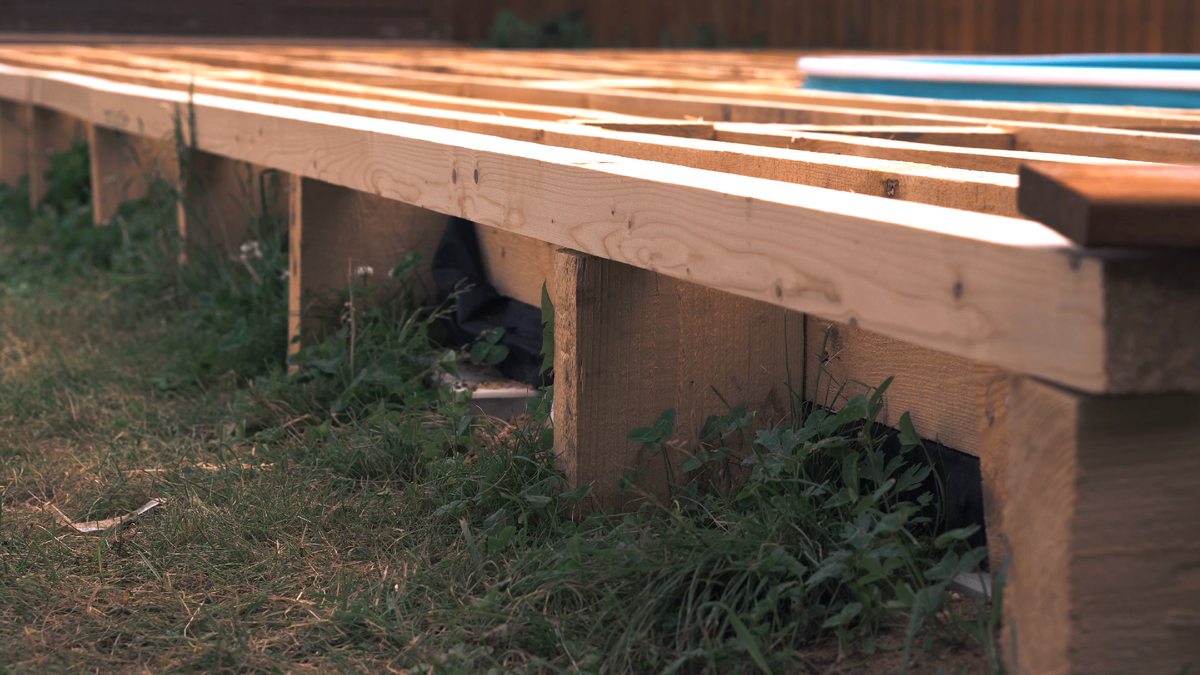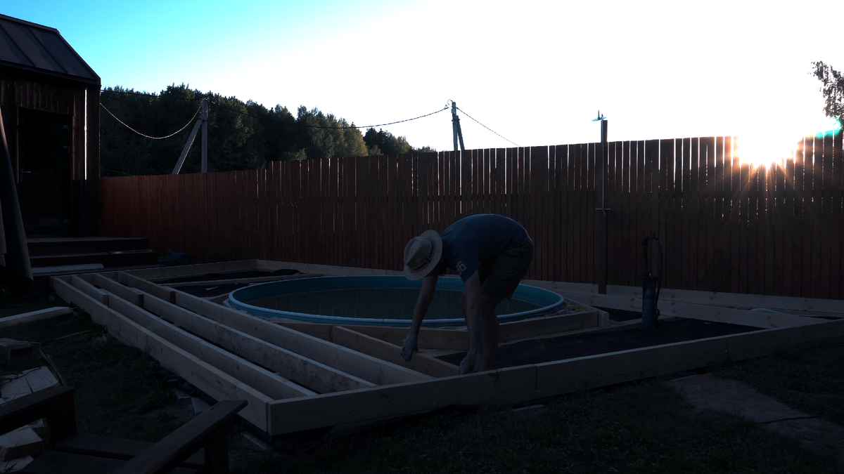 Лаги готовы! Впечатляет сразу размах настила) Хочется скорее приступить к финишной отделке и уже купаться! Ух!)