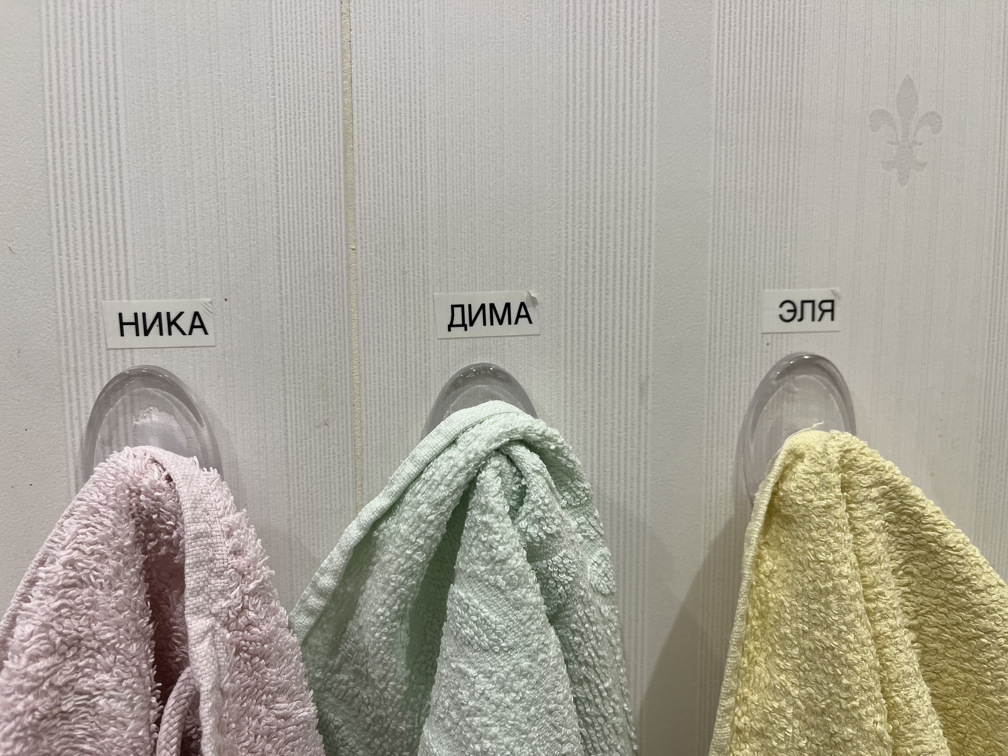 У нас вообще максимально все подписано. Никто не спорит за полку или тряпку - зачем, если она подписана?