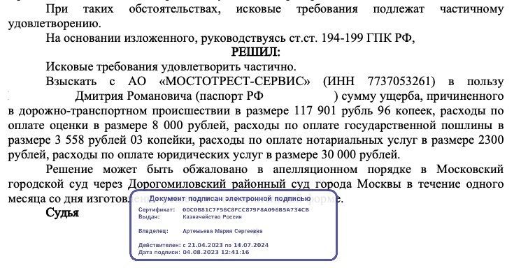 Апрель 2023 - суд рассмотрел дело и перенес его на месяц, потому что Мостотрест попросил отсрочку чтобы ознакомиться с документами