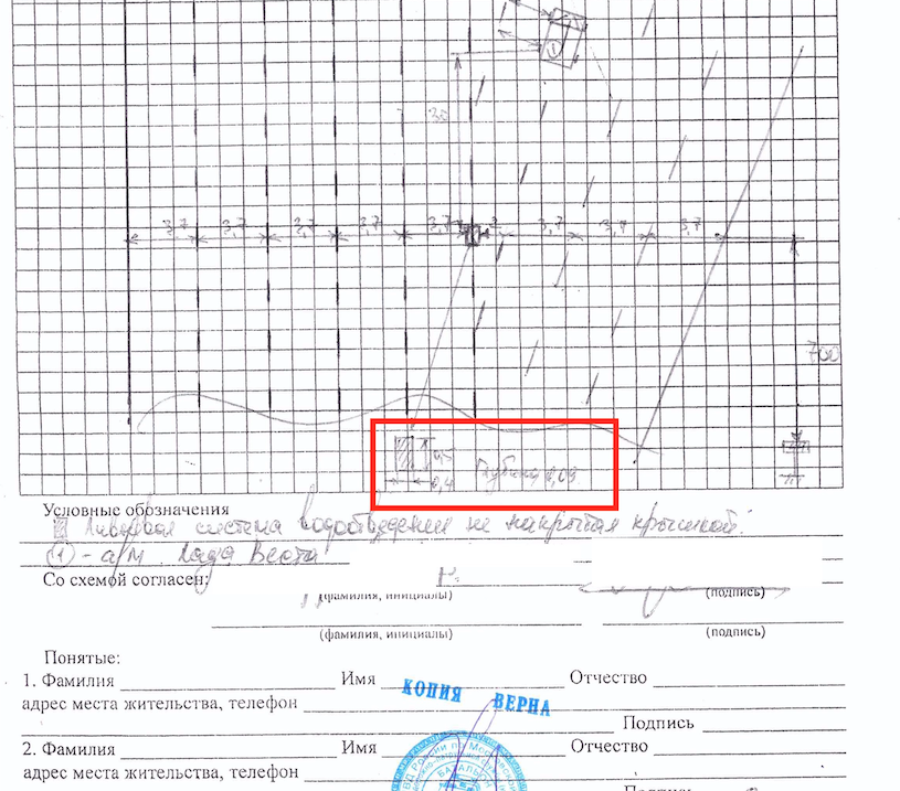 Я проследил, чтобы схема была составлена верно и позже написал письмо в отдел ГИБДД с просьбой предоставить копию схемы, а заодно, уточнить, кто же является ответственным за надлежащее состояние дороги?