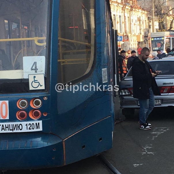 В Краснодаре водитель трамвая не стал дожидаться, пока водители уберут с его пути припаркованные автомобили