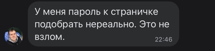 Далее он пошёл кричать что его в ВК взламывают и свято верит в себя: