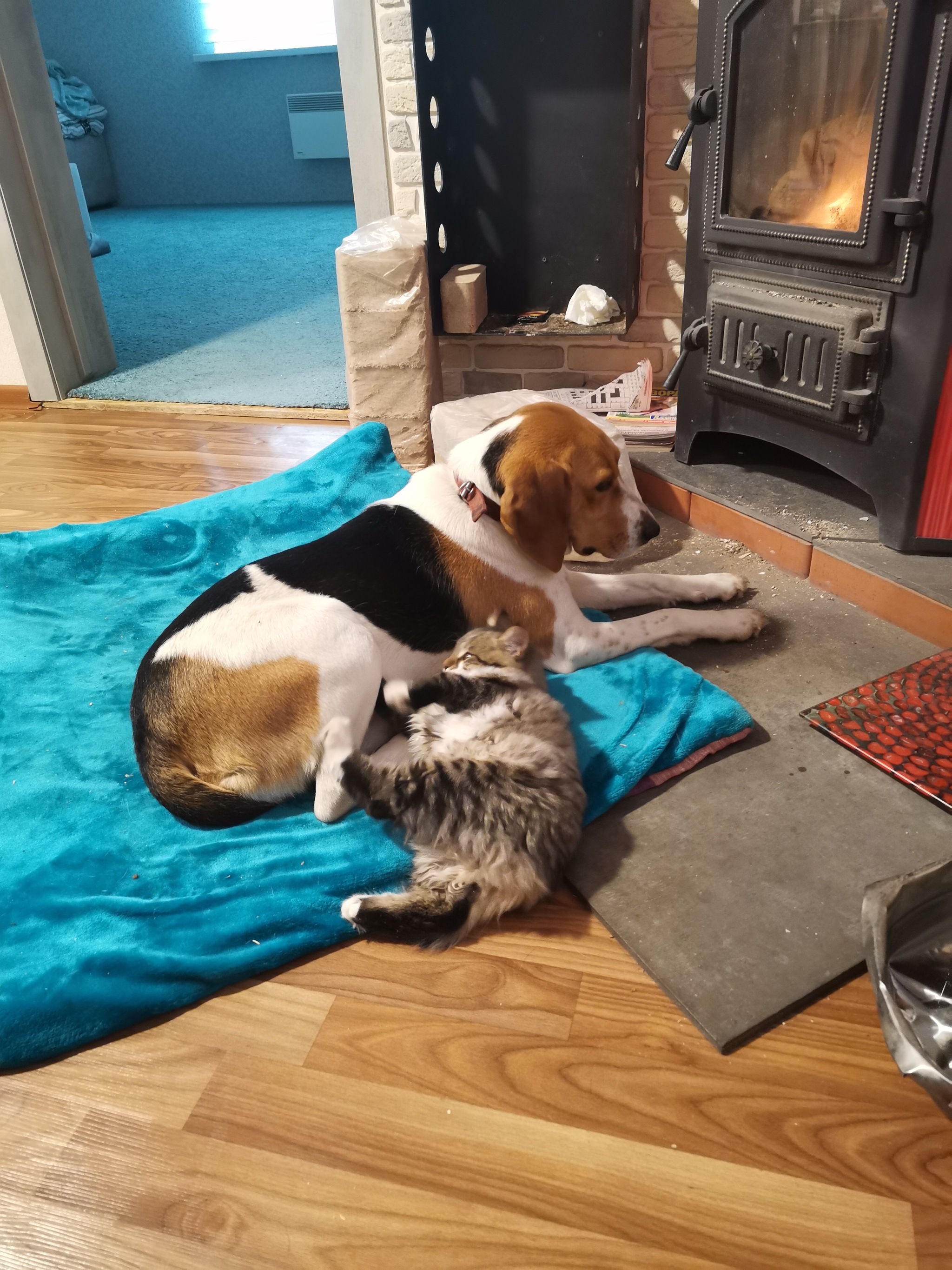 Тут вот со второй кошкой возлежат возле камина.