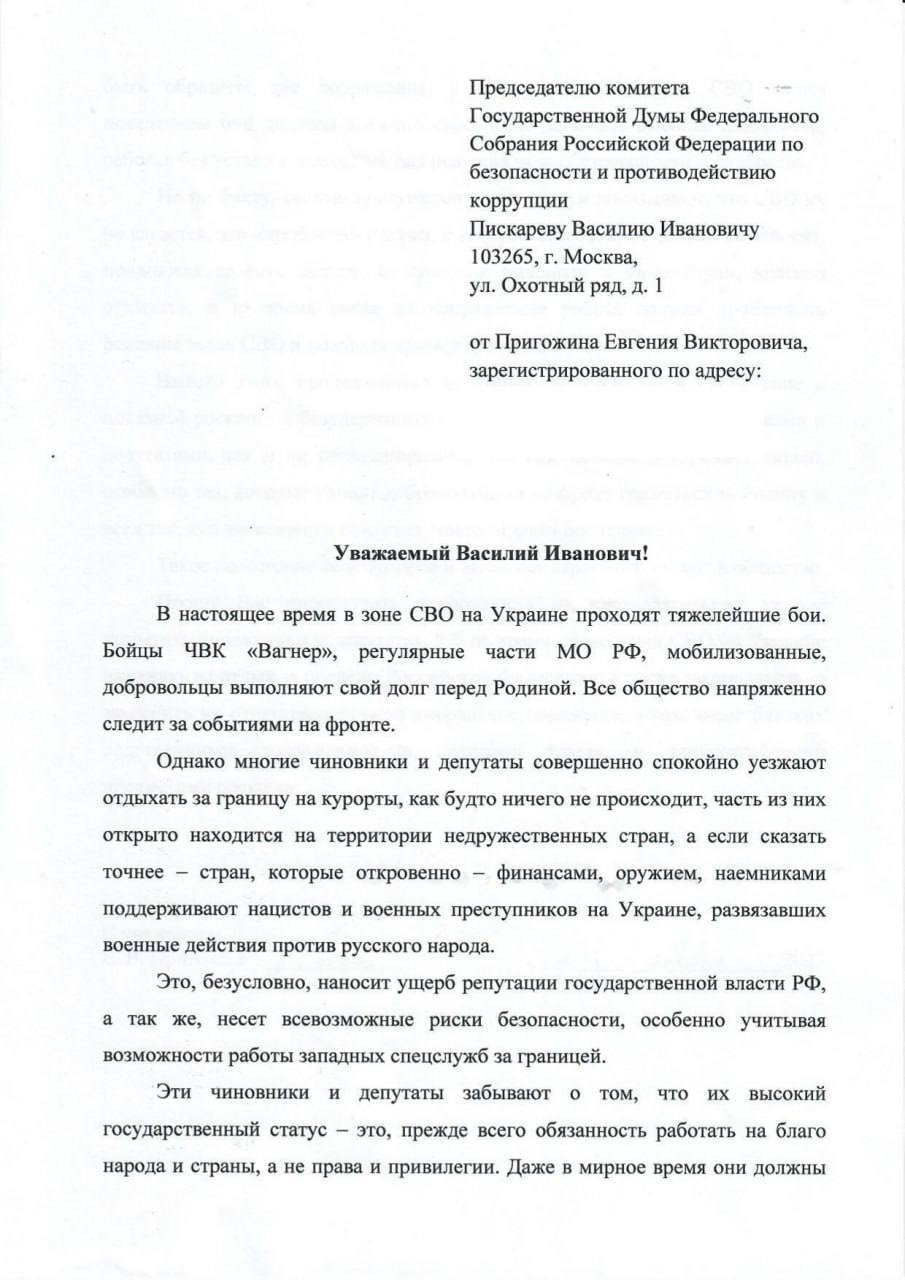 «Действие петербургских властей выглядит как призыв: "Враги России, добро пожаловать в правительство Петербурга!"» — заключил Пригожин.