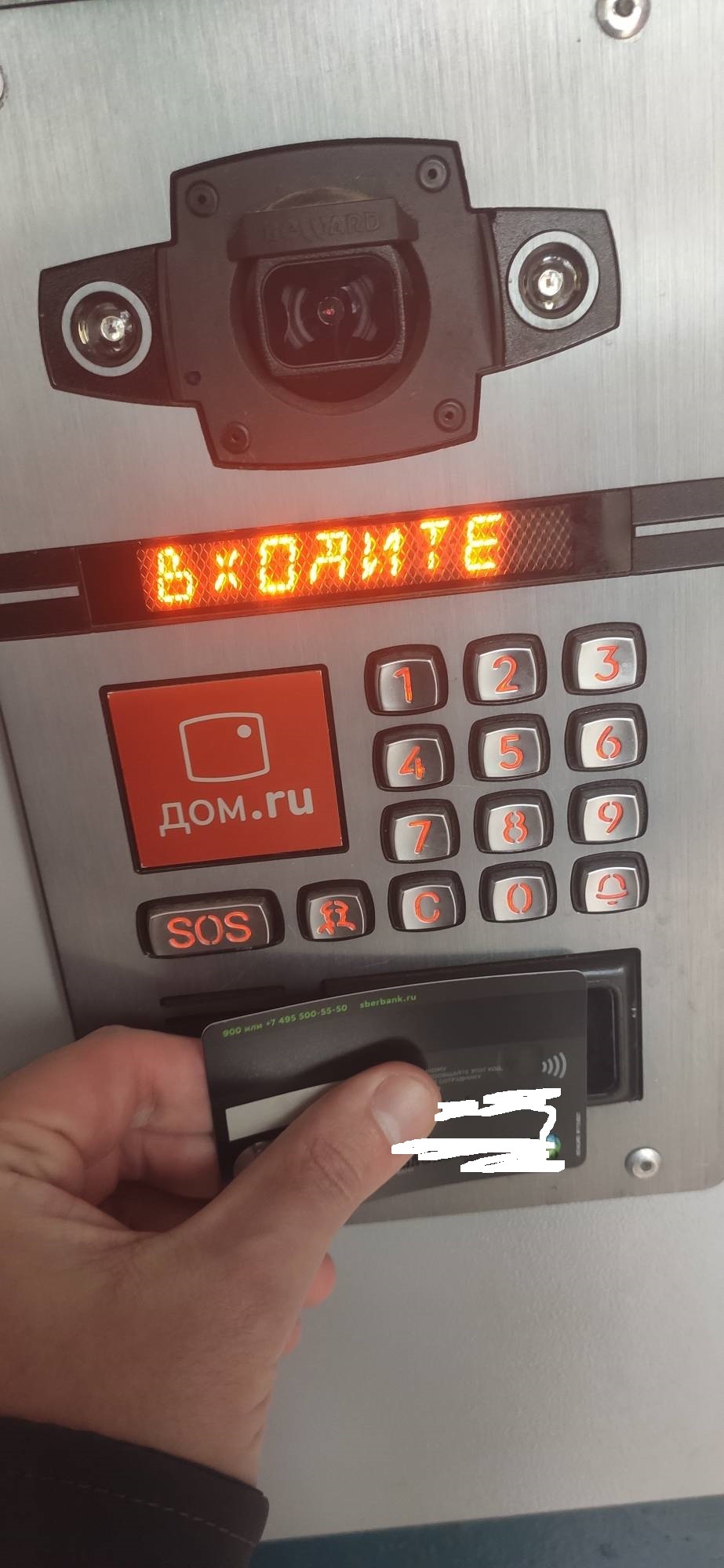 Просто подносим карту банка (Сбер и тинькофф проверены на всех подъездах).