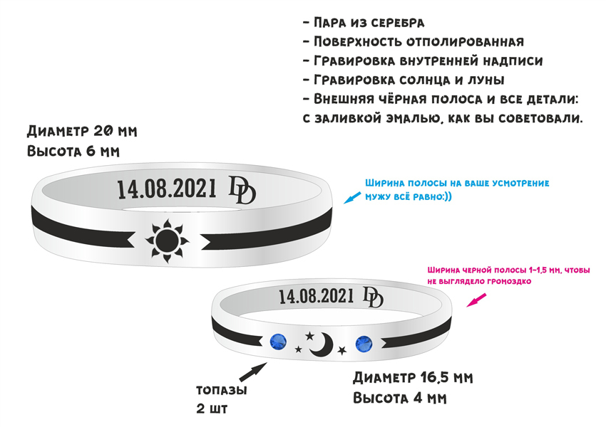 Недавно девушка решила заказать для себя и своего возлюбленного пару колец.