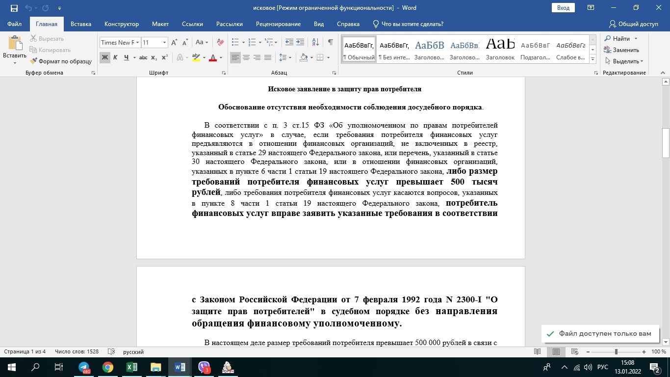 Так выглядело самое начало искового заявления. Норму закона написал крупно))