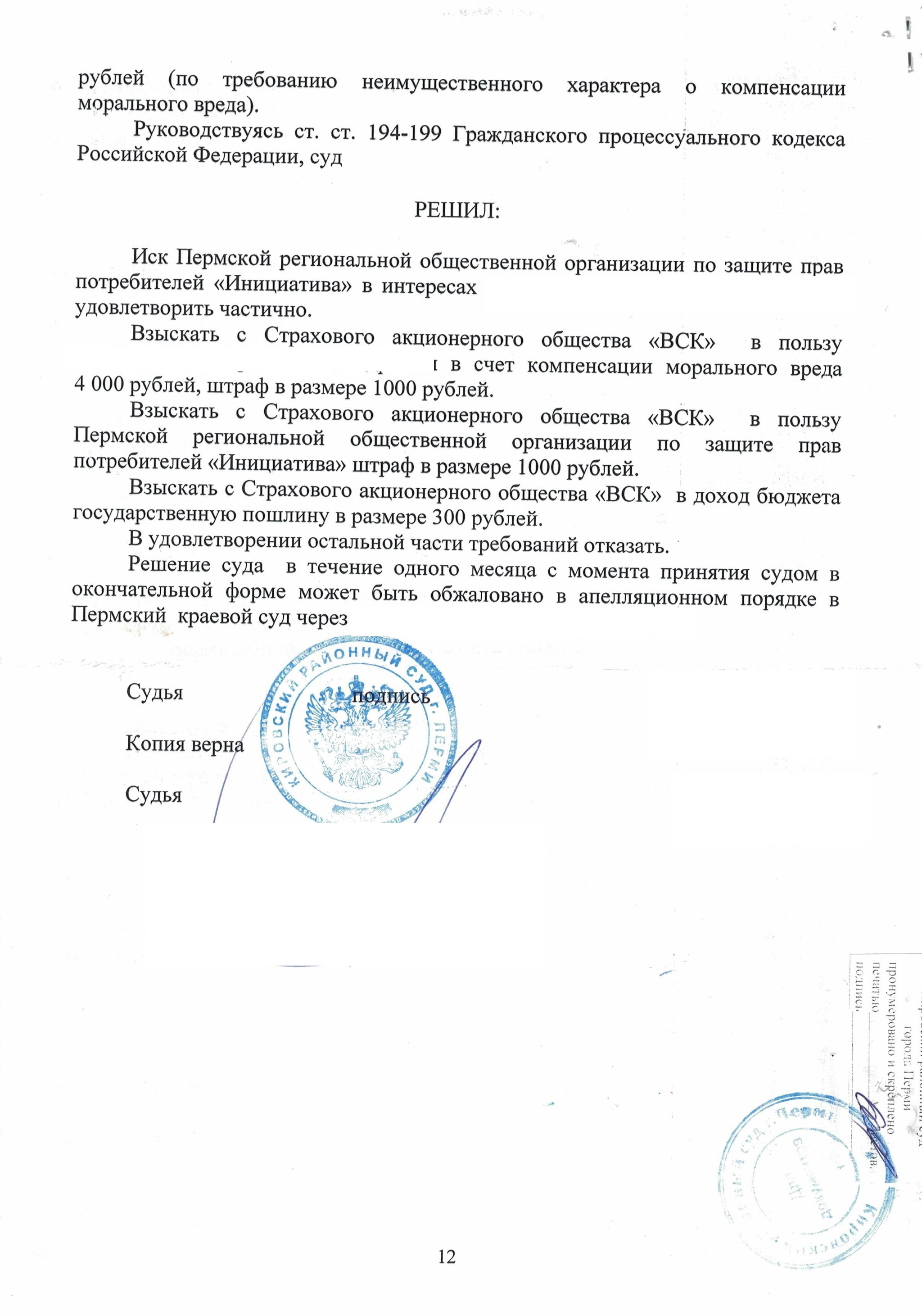 А то, что она снизила моральный вред за год мытарств с 10 т.р. до 4 т.р. мне как человеку и юристу понять вообще никогда не удастся.