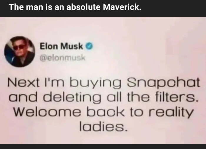 Дальше я куплю Снапчат и удалю все фильтры. Добро пожаловать в реальность, дамочки