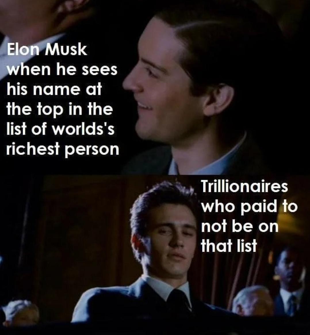 Илон Маск, когда увидел свое имя в топе богатейших людей мира.