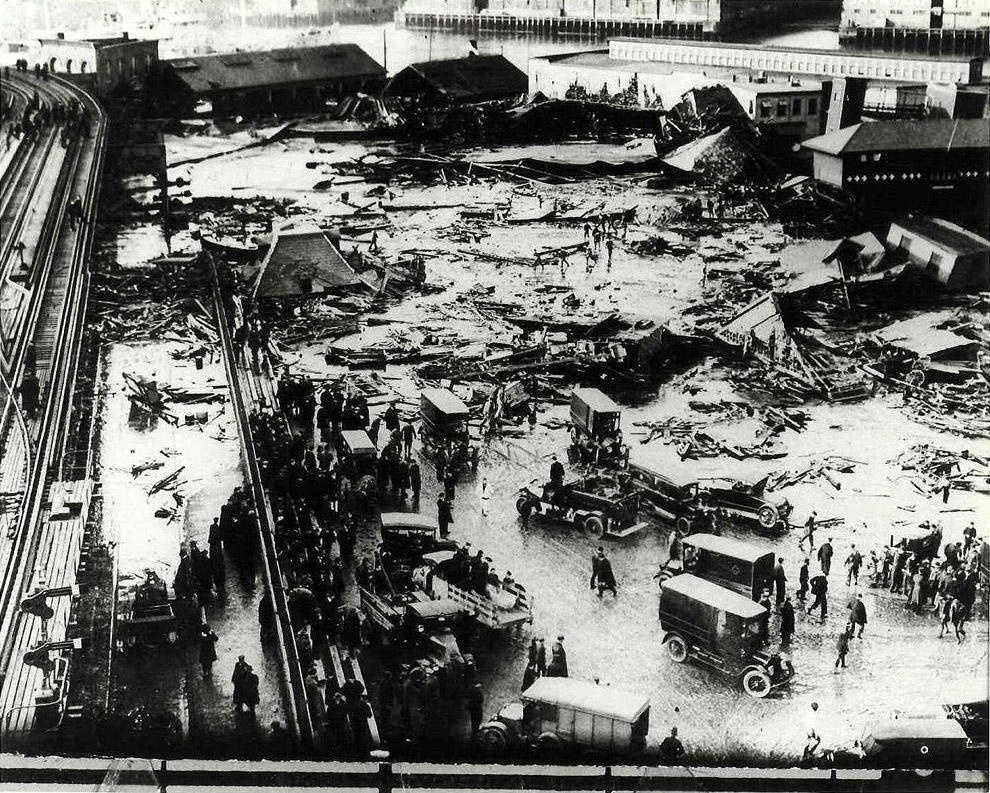 Итак, Бостон, США, 15 января 1919 года, район Норт-Энд, где располагался завод алкогольной продукции (в основном, вискаря не самого лучшего качества) компании Purity Distilling Company. Ввиду активно набиравшего обороты Сухого закона завод пахал в три смены, стараясь произвести и реализовать как можно больше продукции перед полным запретом на продажу алкоголя. Основой для производства служила меласса - ферментированная патока, которая накапливалась в огромном резервуаре объемом 8700 кубов. Для понимания - это почти 4 стандартных плавательных бассейна. В связи с авральными темпами производства, сладенькой жижи туда накачали сколько влезло и еще два ведра сверху. Ну вы уже поняли, к чему всё идет.