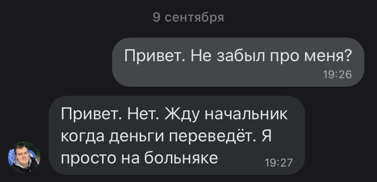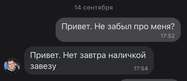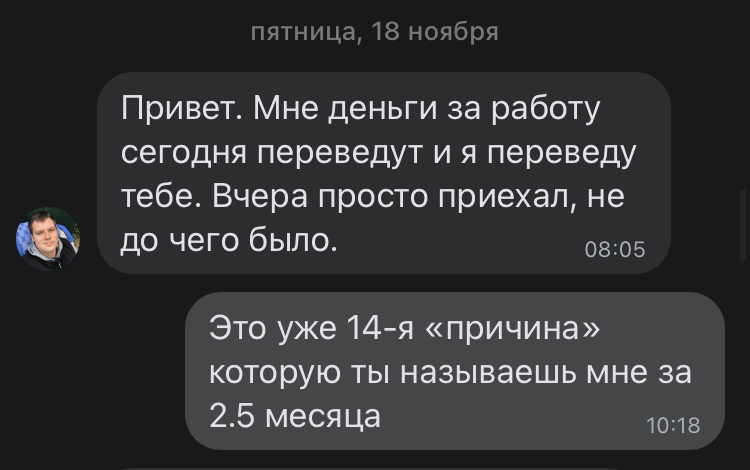 Короче где-то он бухал походу, блядовал, жене сунул 5к, а я в итоге пидорас.