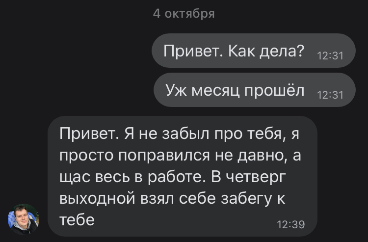 Мне уже эта история кажется довольно забавной, но буду вести учёт каждого данного мне обещания по срокам и всех причин, по которым эти обещания не были выполнены!