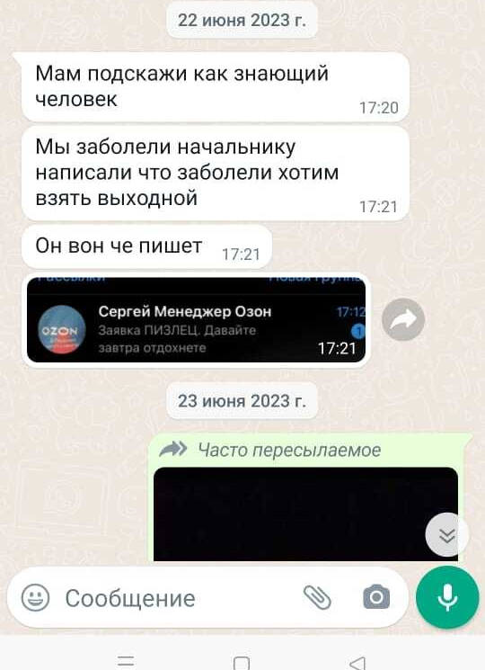 На вахту приехал вместе с другом 15 июня 2023 года (друга обозначим "М"). Привязали к банковской карте сына их зарплату, которую не получили до сих пор ни сын ни друг М. Да и Бог с ней с этой зарплатой, но на всю ситуацию закрыли глаза, ни о какой помощи не шло и речи ( возвращали сына в родной город за 600 км). Жили они в предоставленном складами OZON общежитии по 8 человек. Где, по словам сына, вместе с ними проживало большое количество гастарбайтеров из Средней Азии.