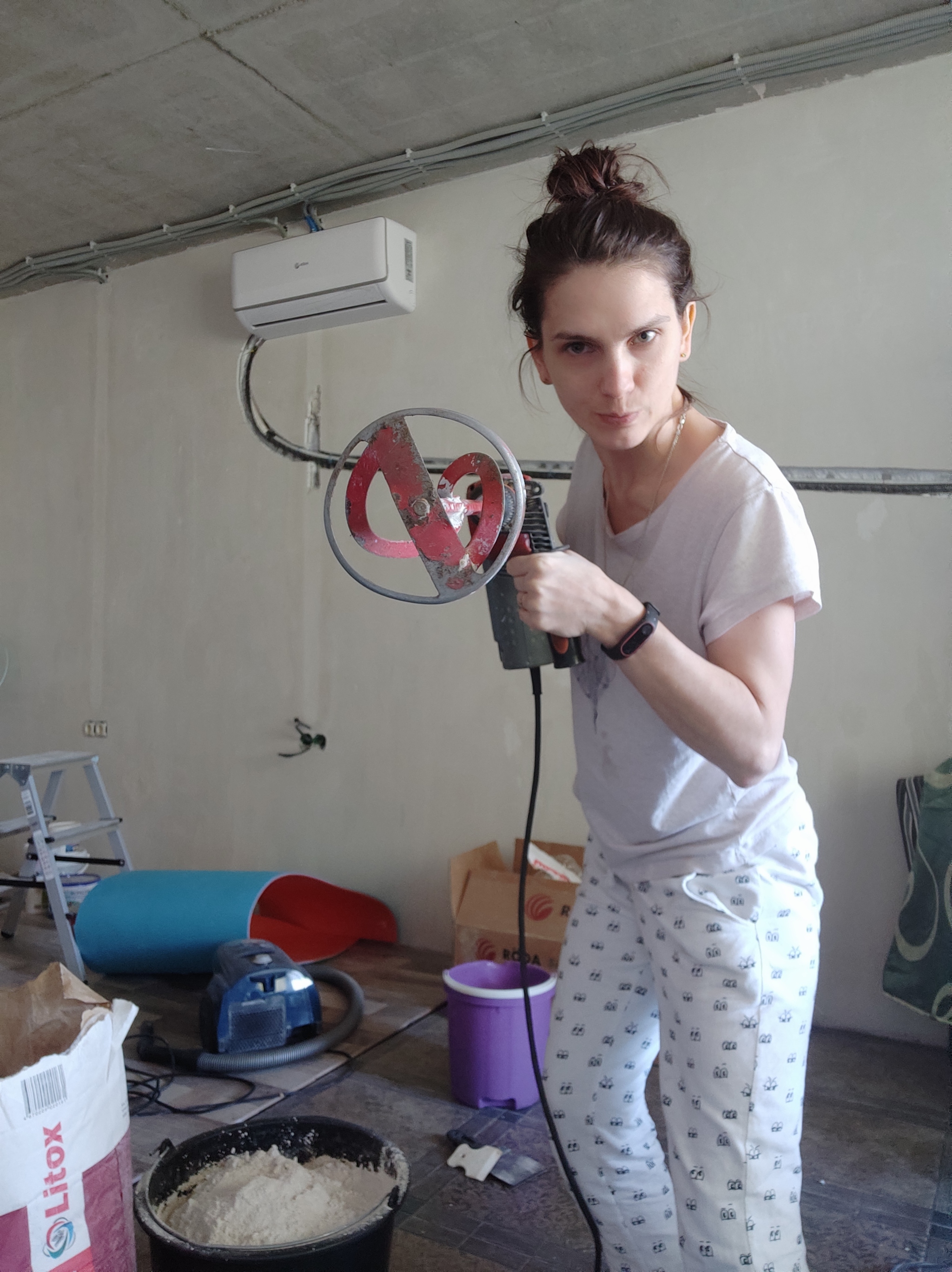 Тут я могла бы соврать, что пятидесятикиллограммовая я сделала весь ремонт своими микроруками, но не стану: Мне помогала бригада Миши, могу порекомендовать если кому из местных надо, в комментах. Замечательные, ответственные люди!) Но и на меня хватило обойного клея, краски, плинтусов и прочих приятных хлопот.