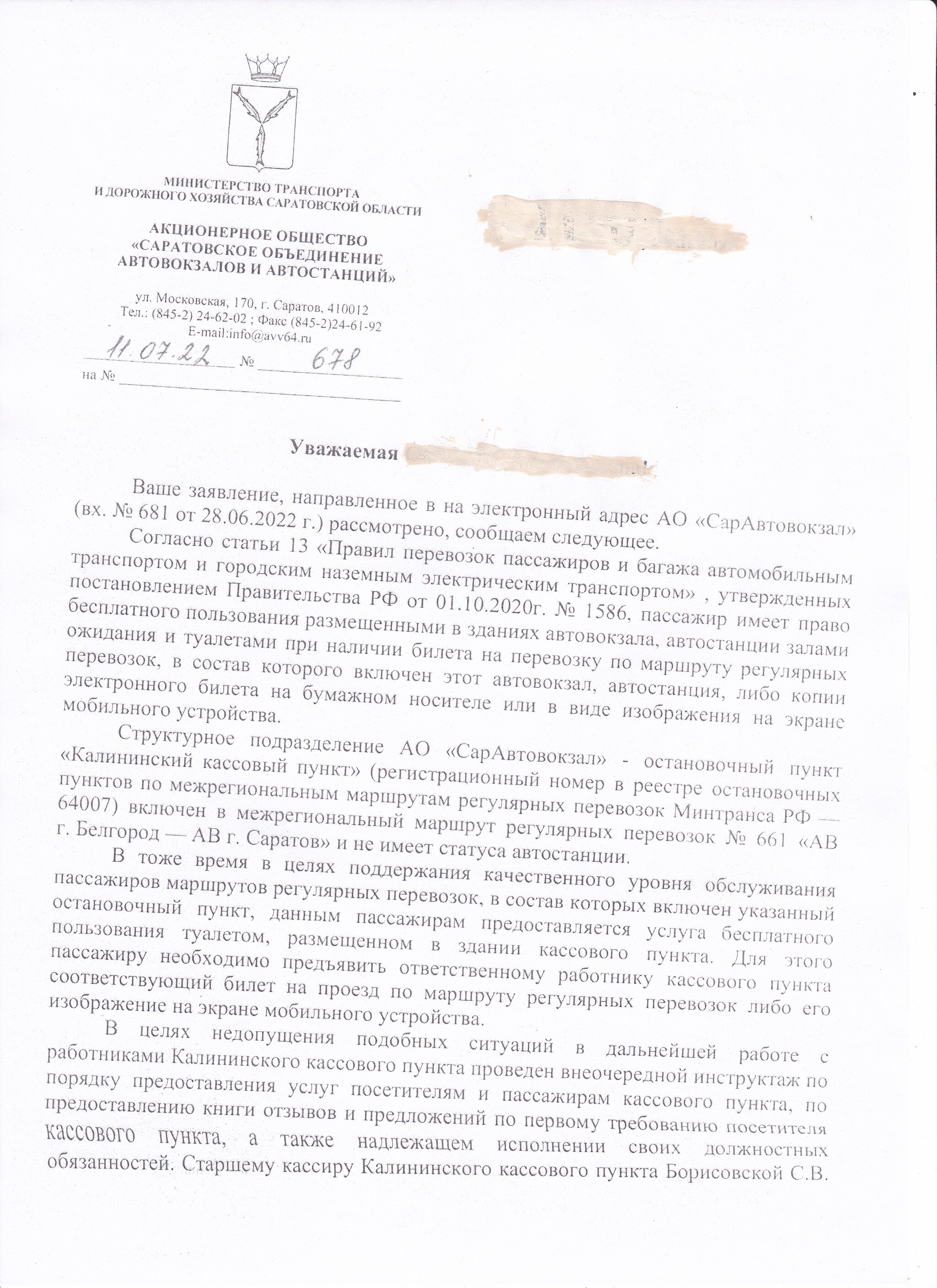 На следующий день, уже из дома открываю их сайт, катаю жалобу на имя начальника всех вокзалов и заодно тот же текст отправляю в Управление транспорта области. Вопрос принципа уже.