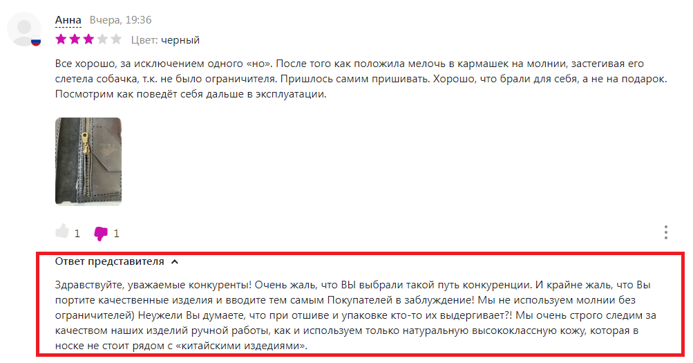 Тут я хочу особенный акцент сделать на информацию о проценте брака у продавца, которая, как я уже убедился, совершенно не соответствует действительности: