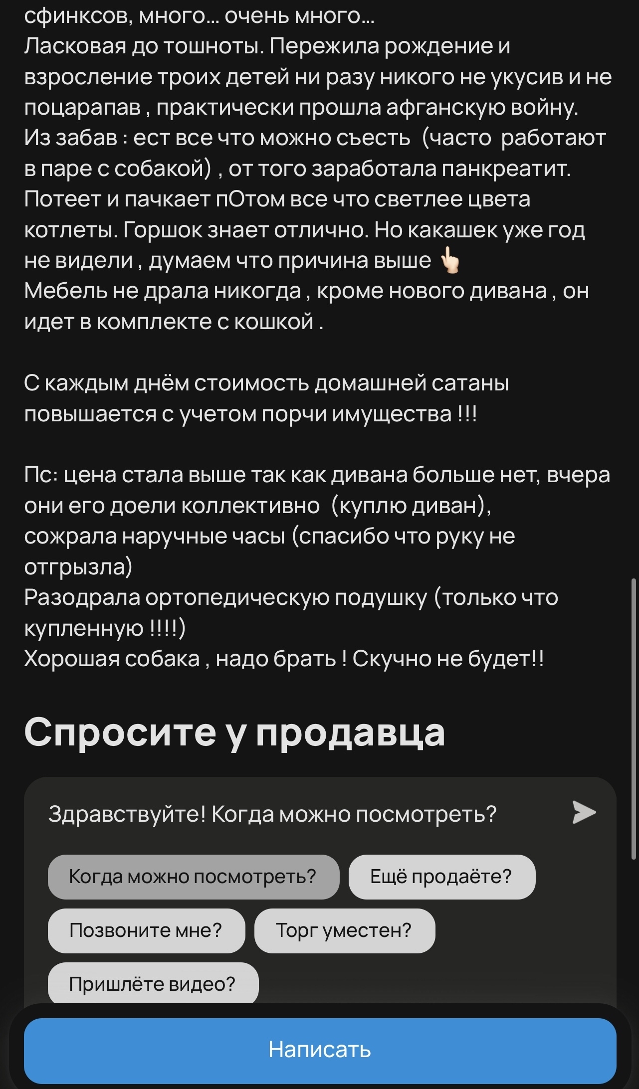 Гулял я тут на просторах Авито и случайно увидел объявление о продаже Шпикачки Шпика.
