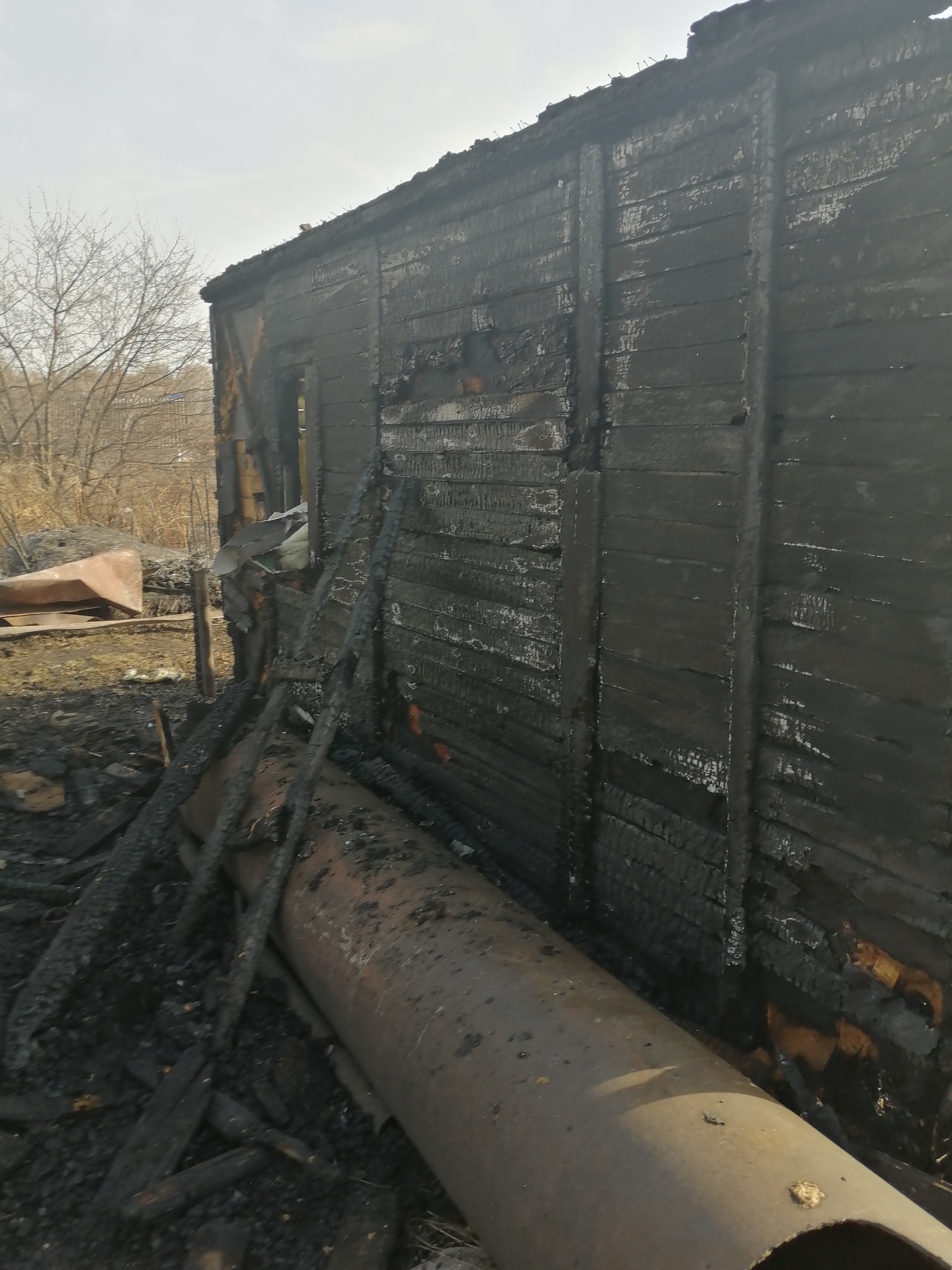 Пожарные приехали через 40 минут и заливали угли.
