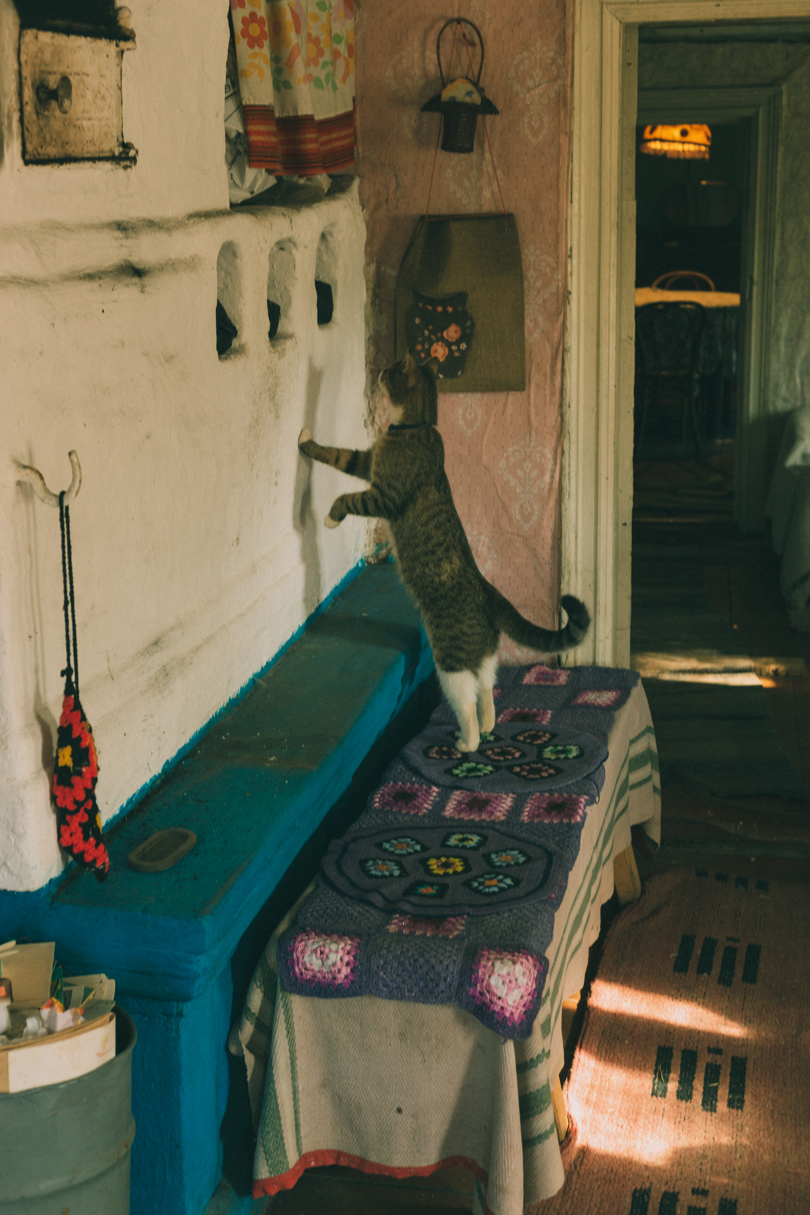 Я очень любила кормить кошку, когда все уезжали по делам в город. Открывать шершавую синюю дверь, нагретую солнцем, и входить на крыльцо. Подниматься наверх по протертым ступеням, вдыхать запах этого дома - запах сена, русской печки и лета. Запах детства в деревне.