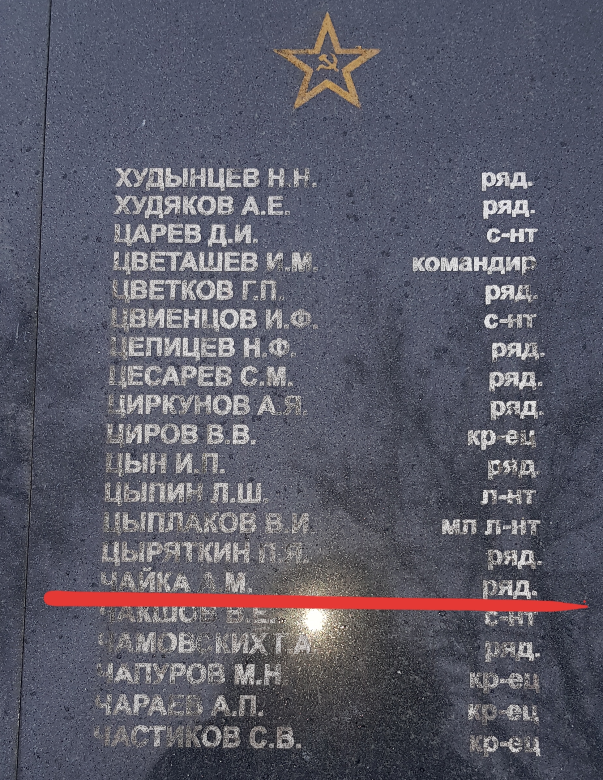 Подойдя к мемориалу, я с замиранием сердца начал изучать фамилии на гранитных плитах. И я нашёл, со слезами на глазах стоя на коленях я нашел тебя прадед!