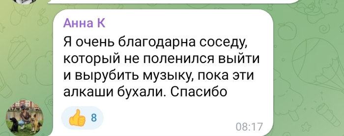 P.3s. менты ехали 45 минут ровно и приехали, когда все уже угомонились и черти эти то ли нашли ключи, то ли сходили за дубликатом, по итогу просто сказали чертям "идите домой".