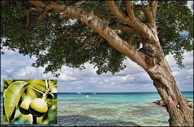 Манцинелловое дерево происходит из семейства Молочайных и относится к вечнозеленым растениям. Цветет круглый год. Очень любит влагу, поэтому чаще всего растет на морских побережьях, где сильно страдает от воздействия порывистых ветров, отчего ветви у него деформируются и кроны принимают весьма причудливые формы.