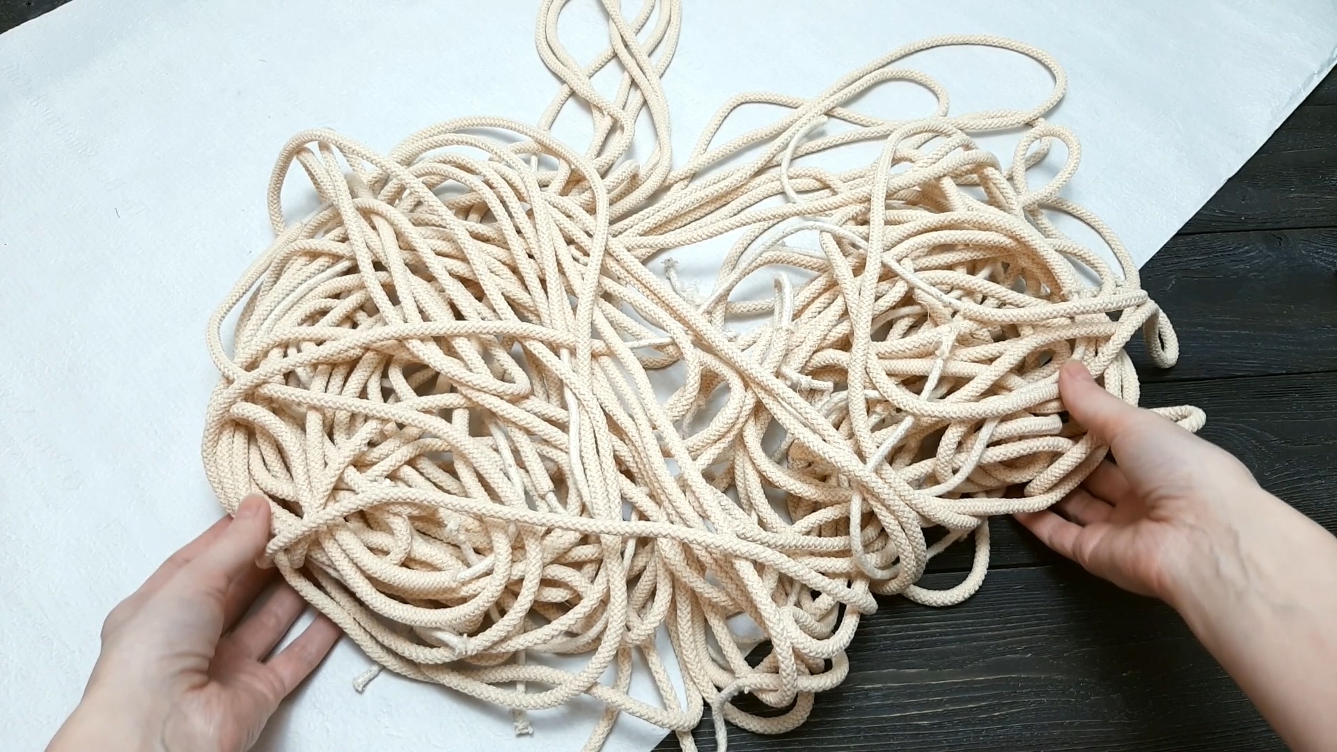 Берем плотный шнур, главное чтобы он не растягивался, разрезаю на 16 полосок по 2,5 метра.