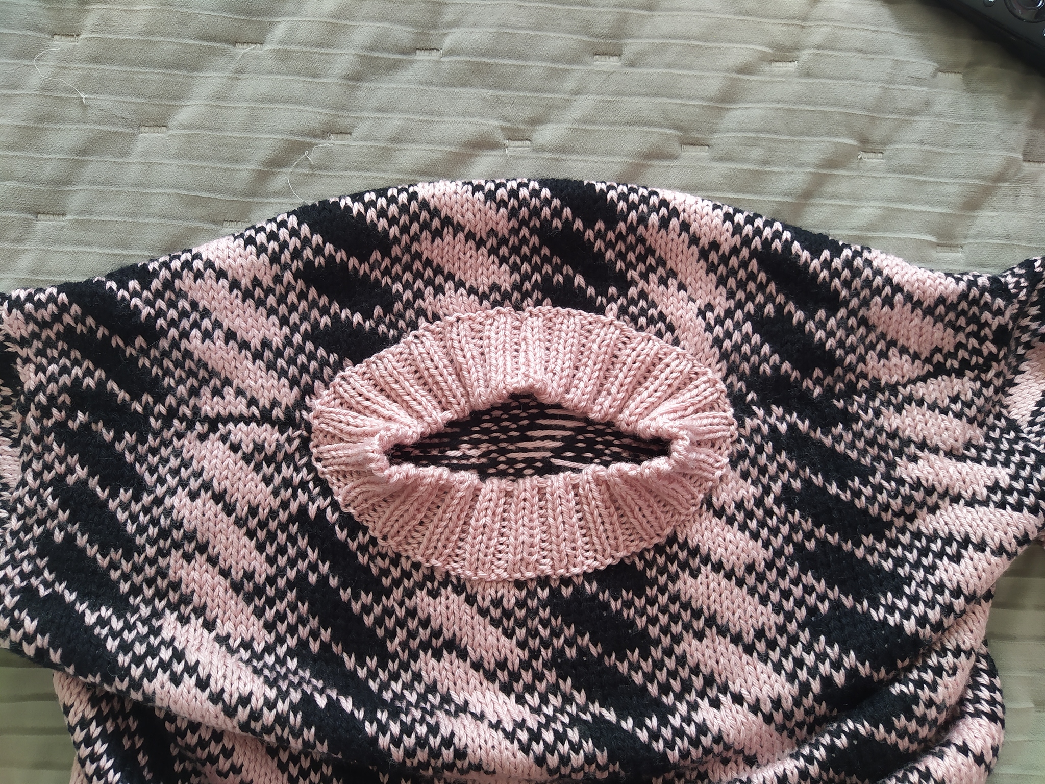 Тогда, три недели назад, самые внимательные, кто отвечал на мой комментарий, обратили внимание, что в отличии от оригинала, я связала горловину резинкой 1*1. Это для меня было самой большой дилеммой, потому что изначально я вязала 2*2, но потом мне не понравилось и я перевязывала. Но потом, когда рукава уже были довязаны, ворот 1*1 тоже мне разонравился (рука-лицо). В итоге, я снова вернулась к горловине и снова связала ее 2*2, но уже спицами потолще и тогда результат меня удовлетворил.