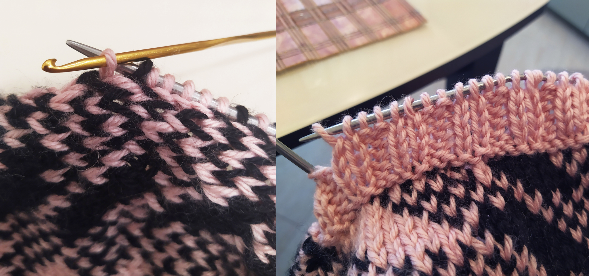 Так или иначе, резинки - это дело не хитрое, их всегда можно перевязать, вполне вероятно, что я потом сделаю их пошире, благо у меня остался еще почти целый моток розовой пряжи.