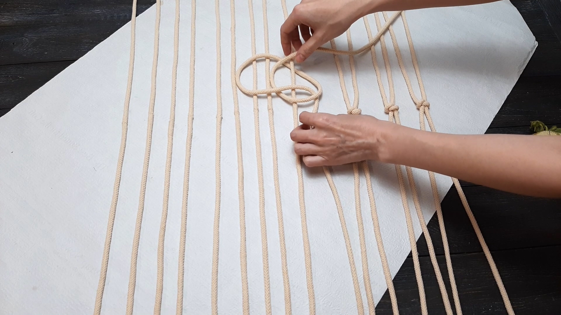 И завязываю узлы, много узлов на равных расстояниях между собой.