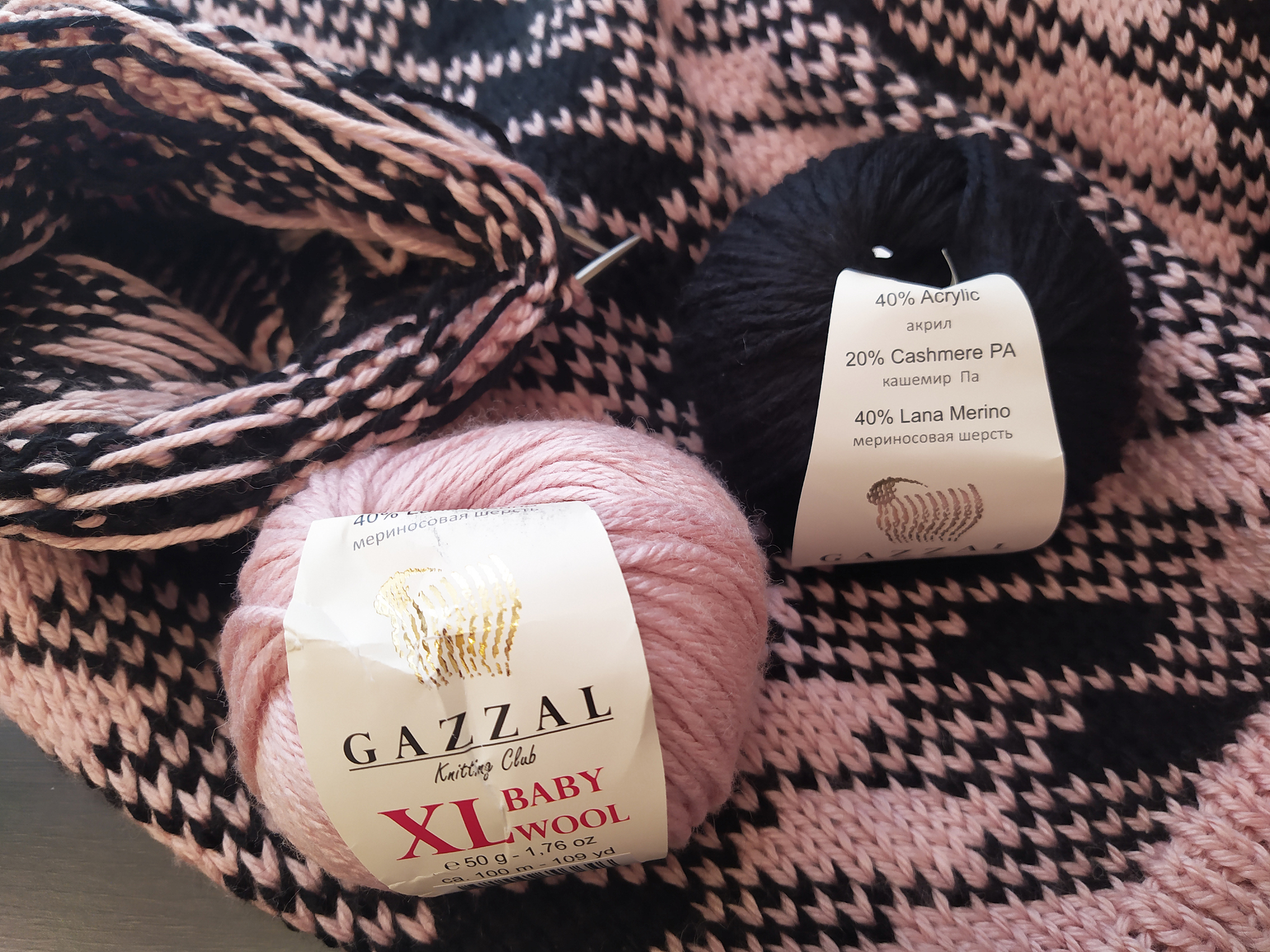 Пряжу я выбирала долго и в итоге остановилась на Baby wool от Gazzal. Это мягкая пряжа для теплых изделий, состав видно на фото. Спицы - вроде бы 4,5 для основного полотна и 4 для резинок.