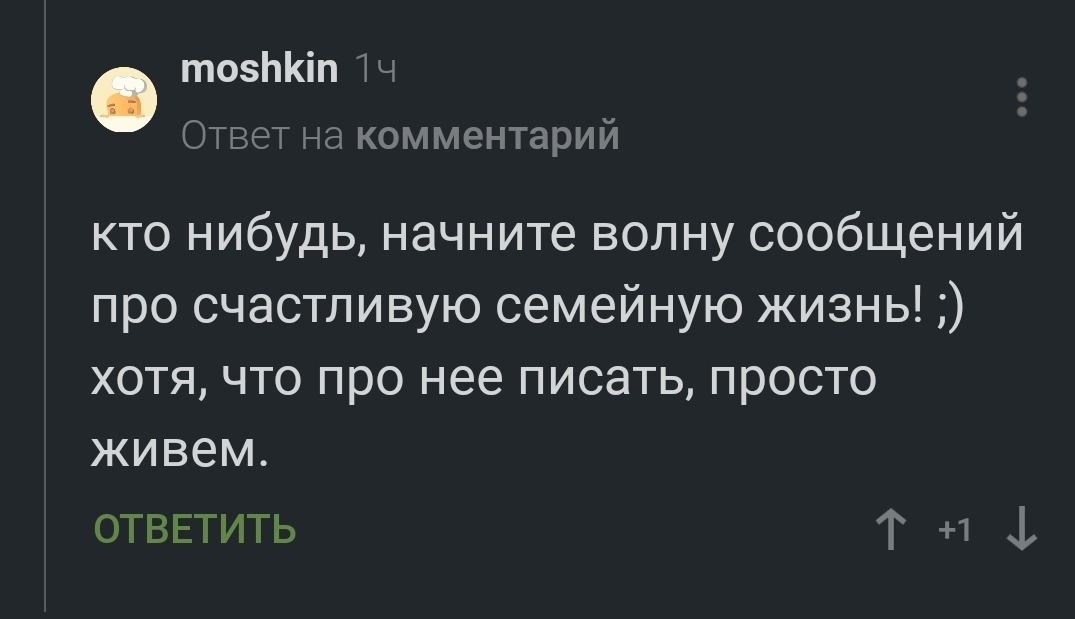 Муж у меня довольно беспардонный. Пукнуть при мне, сделать отрыжку, почесать яйца - для него в порядке вещей. На мои упреки отвечает, что это естественно и у себя дома он не намерен сдерживаться. Ок, решила я, буду бить тебя твоим же оружием. Не сделала эпиляцию, наелась чеснока на ночь, пукнула возле него, села обрезать ногти в зоне его видимости... На что он сказал НАКОНЕЦ-ТО У НАС НОРМАЛЬНАЯ СЕМЬЯ!!!