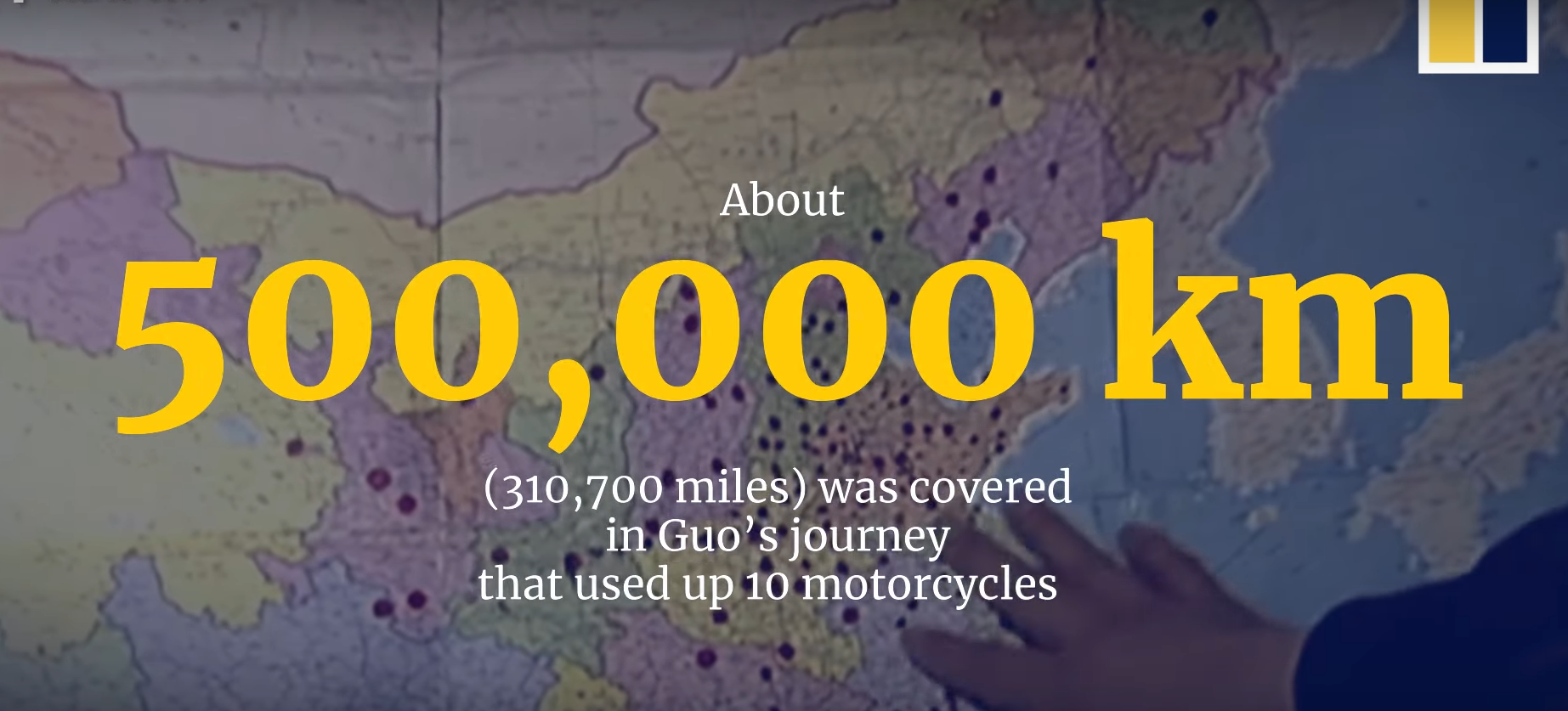 Однако Го Гантан не захотел сдаваться. Прицепив к мотоциклу транспарант с портретом сына,он отправился на поиски своего ребенка. Преодолев около 500 000 км, Го за 24 года побывал почти во всех провинциях страны и сменил за это время 10 мотоциклов.