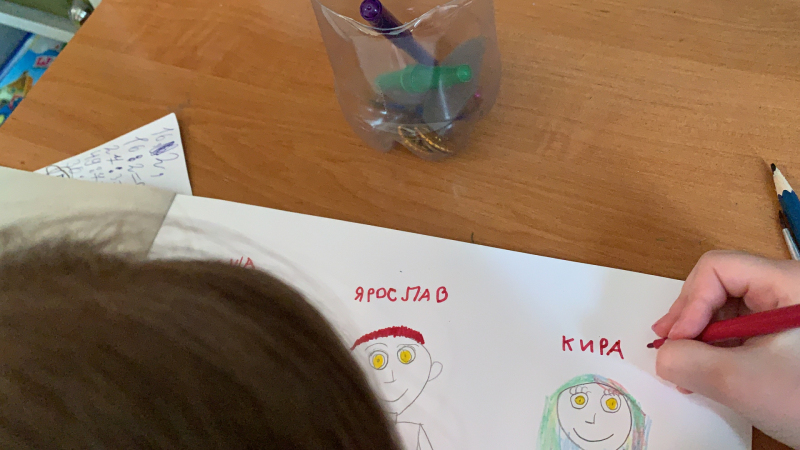 Семилетняя Кира сосредоточено открывает один фломастер за другим и рисует свою семью. В центре – ее старший брат, 21-летний Ярослав, а рядом его девушка и сама Кира. А в перерывах между рисованием девочка не слазит с рук любимого брата.