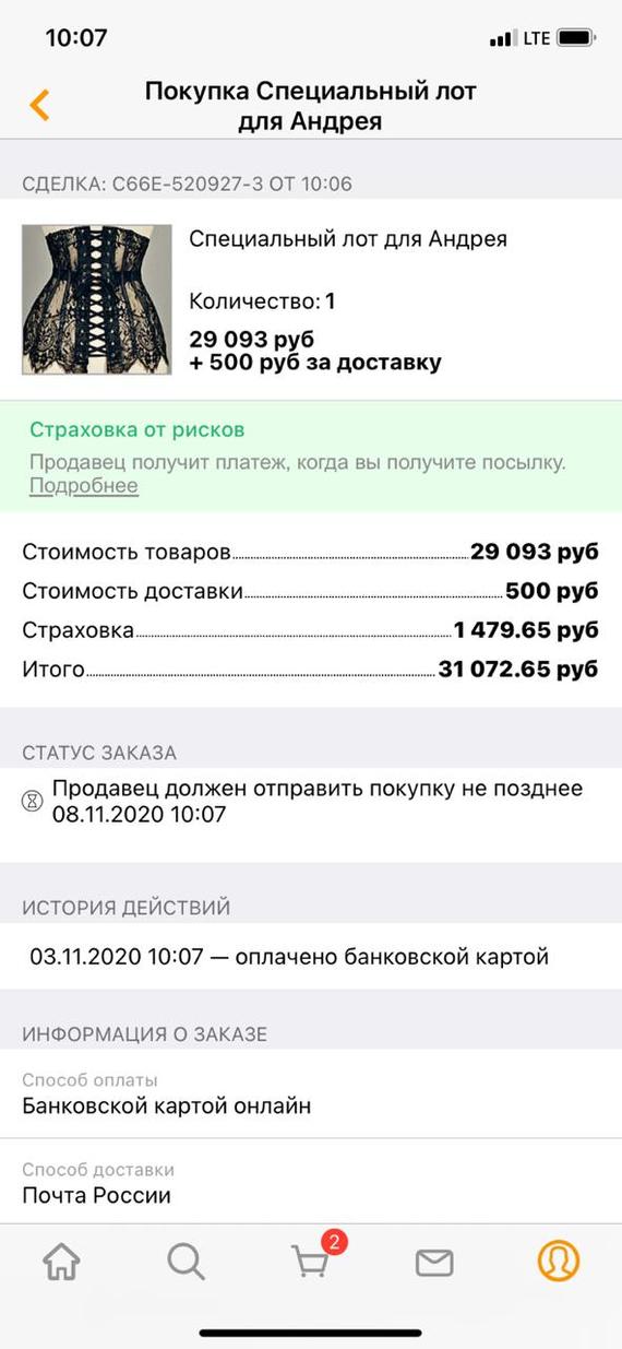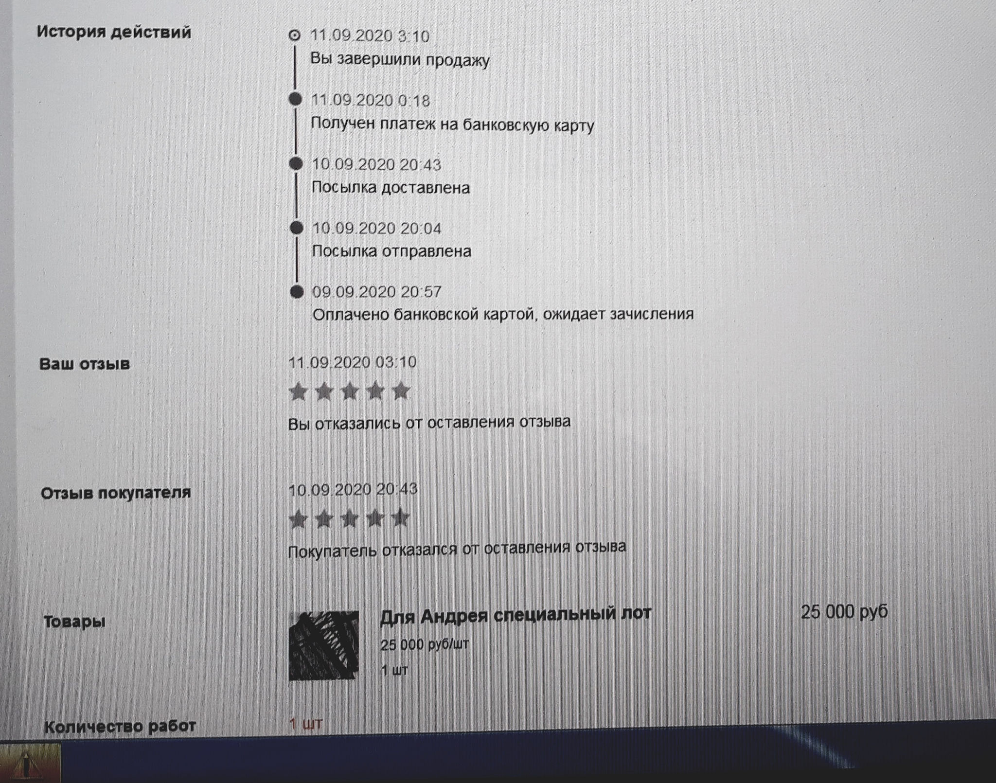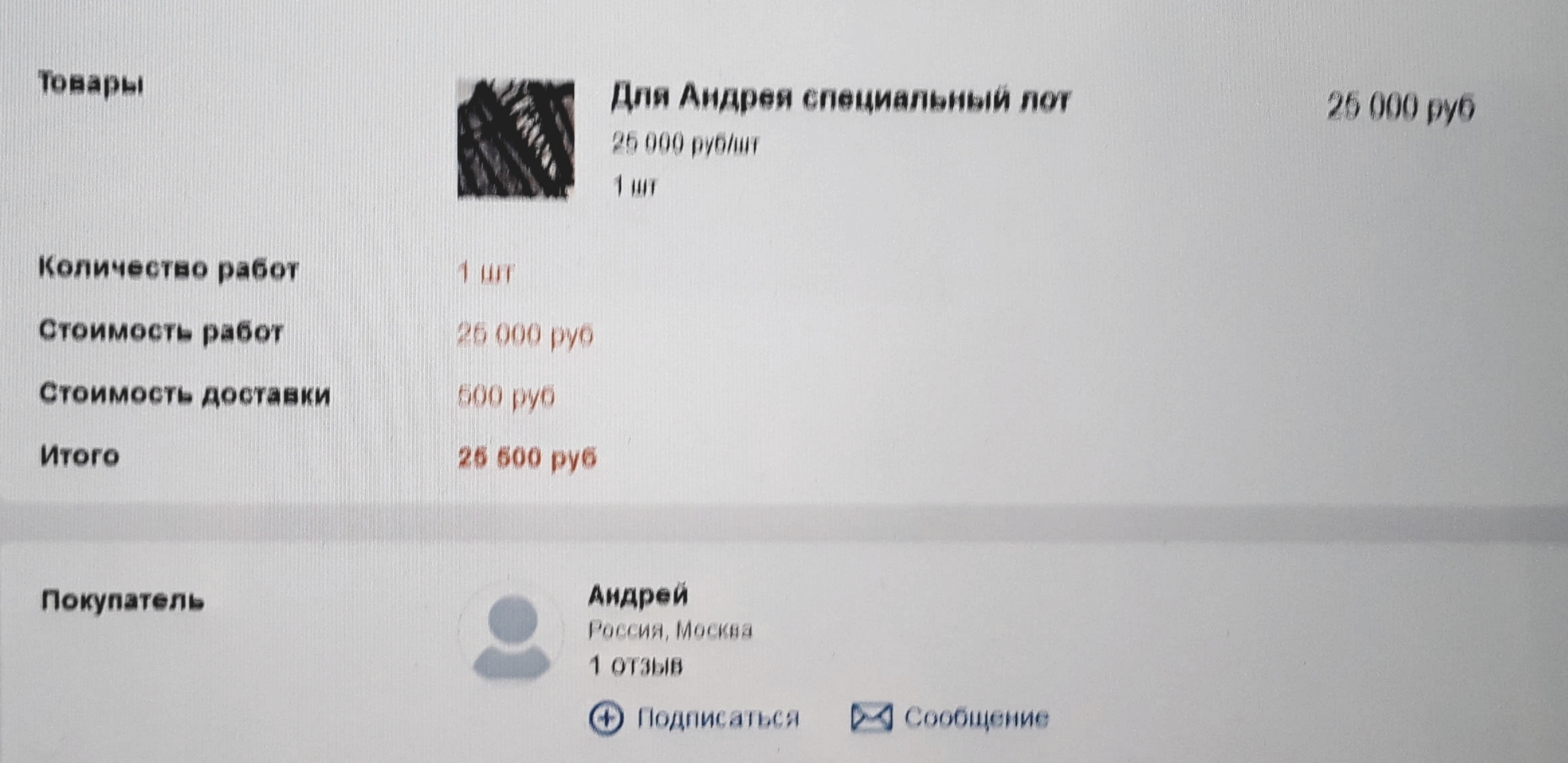Поясню. Предоплата должна была быть 25500. Поскольку стоимость доставки тоже автоматически пихается в лот, а доставлять ничего не нужно, я сделала цену со скидкой 25к плюс 500 рублей доставка которой нет. Итого как раз получалось 25500. На деле же клиент заплатил ВОТ ЭТО!!!