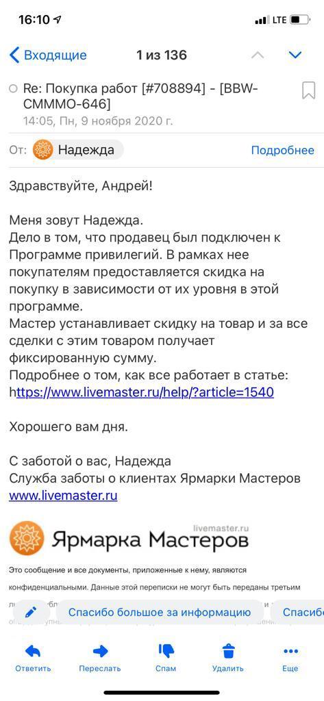 В какой-то момент приводила магазинчик в порядок, увидела уведомление: "подключите программу привилегий". Долго вчитывалась в правила, но так и не поняла чем это может быть полезно. Суть такая - подключая эту штуку, ты обязуешься все товары со статусом "готовая работа" продавать со скидкой. А взамен какие-то невнятные плюшки типа "можете покупать со скидкой до 90%" или типа того. Можете, но что именно? До 90, это значит вообще любая... Хрень короче. Но я подумала, что работа готовая у меня одна, и сделать скидку мне не жалко, а вдруг и польза будет. Подключила и забыла. Это преамбула. А теперь собственно, история.