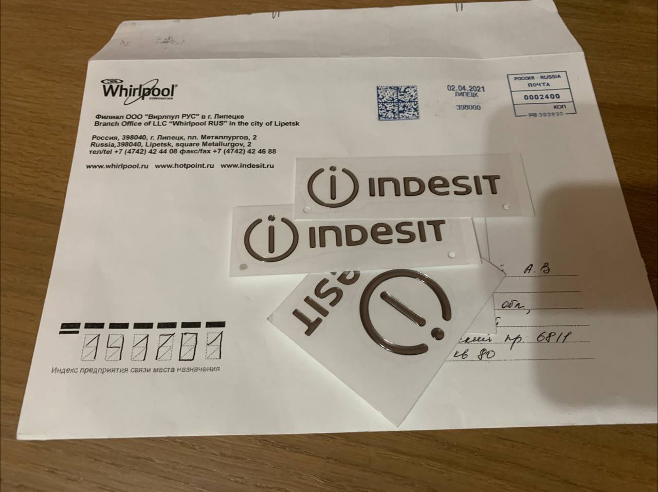 Очень не хотелось этим заниматься, вещь всё-таки тяжелая, а дефект ерундовый, поэтому я позвонил в Indesit-Whirpool на горячую линию. Девушка на том конце провода призналась, что впервые слышит, чтобы человек звонил из-за отсутствующей буквы в логотипе, но пообещала что-то придумать.