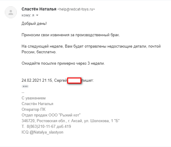 Спасибо "Рыжему коту" за клиентоориентированность.