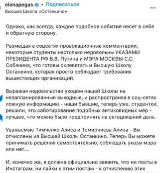 «Высшая школа Останкино» отчислила несколько студентов ЗА ЛАЙКИ НА КОММЕНТАРИИ в инстаграме, критикующем учебное заведение
