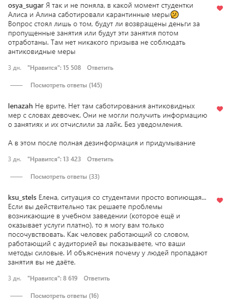 «Наши бывшие теперь уже студентки решили, что саботирование подобных антиковидных мер — лучшее, что можно было предпринять на сегодняшний день», — заявила она.