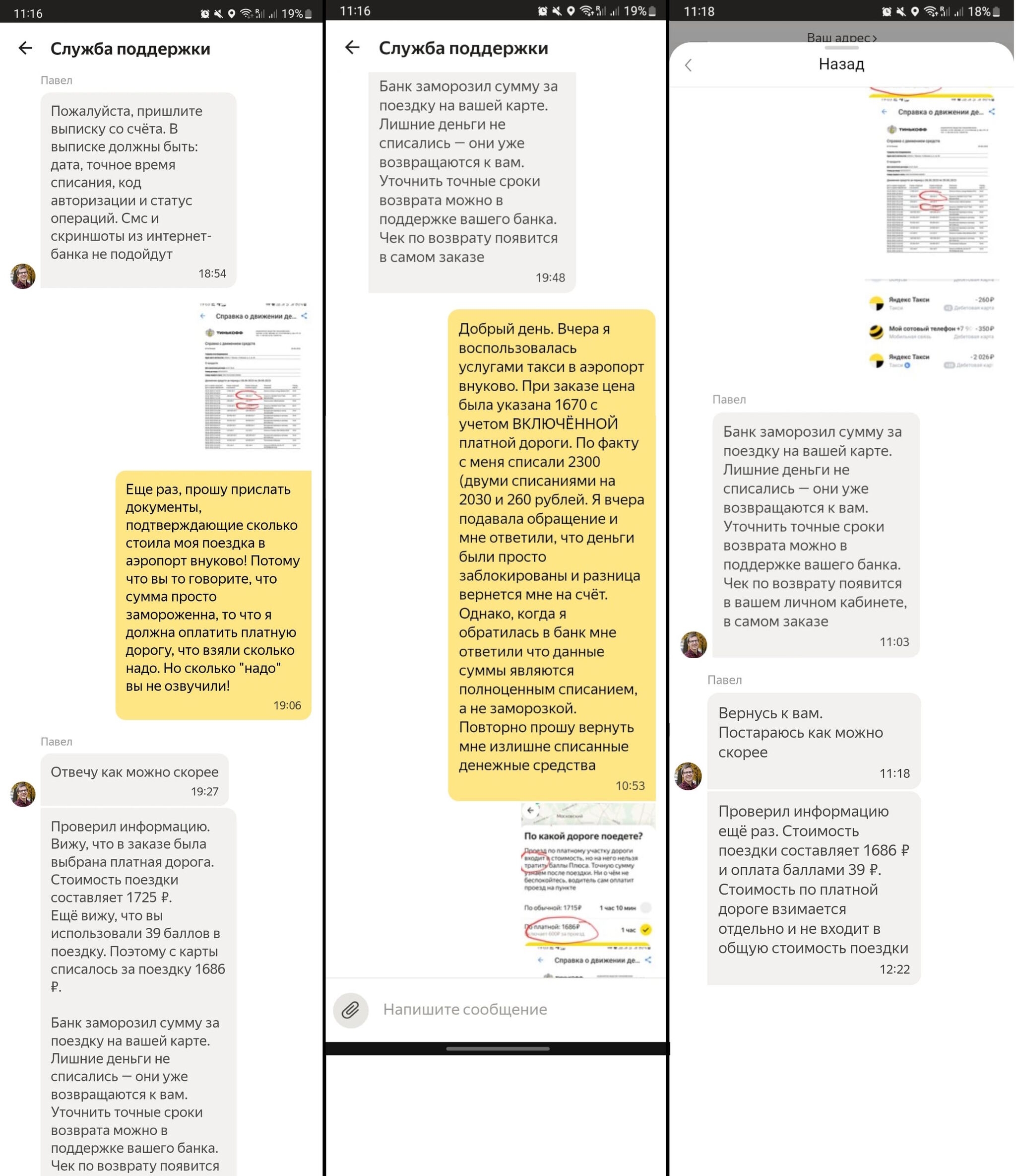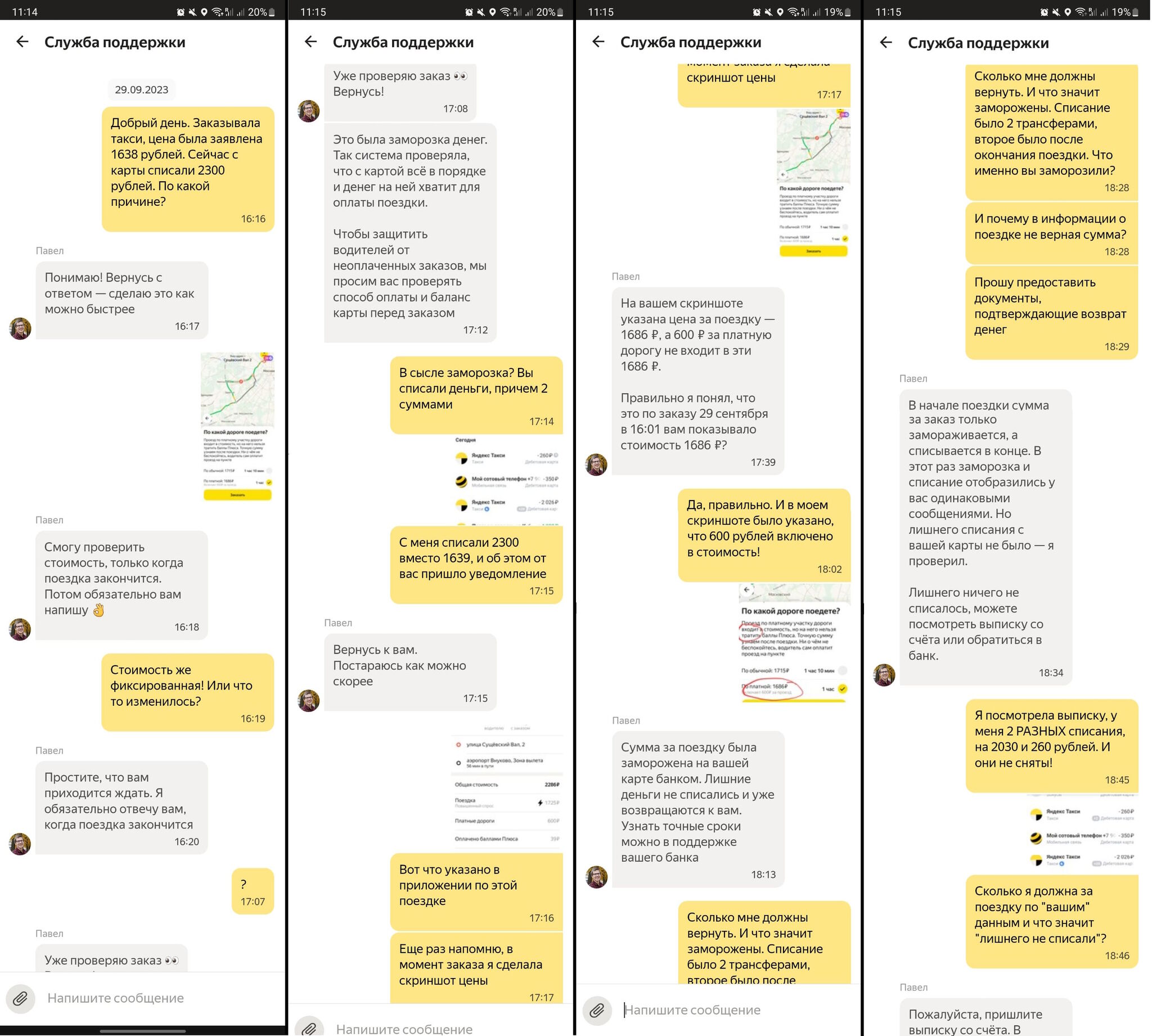 После поездки, яндекс списал с карты двумя транзакциями 2026р. + 260р.
