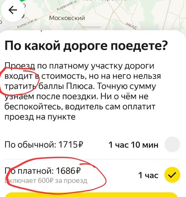Во время заказа, приложение выдало вопрос: "по какой дороге поедете?".