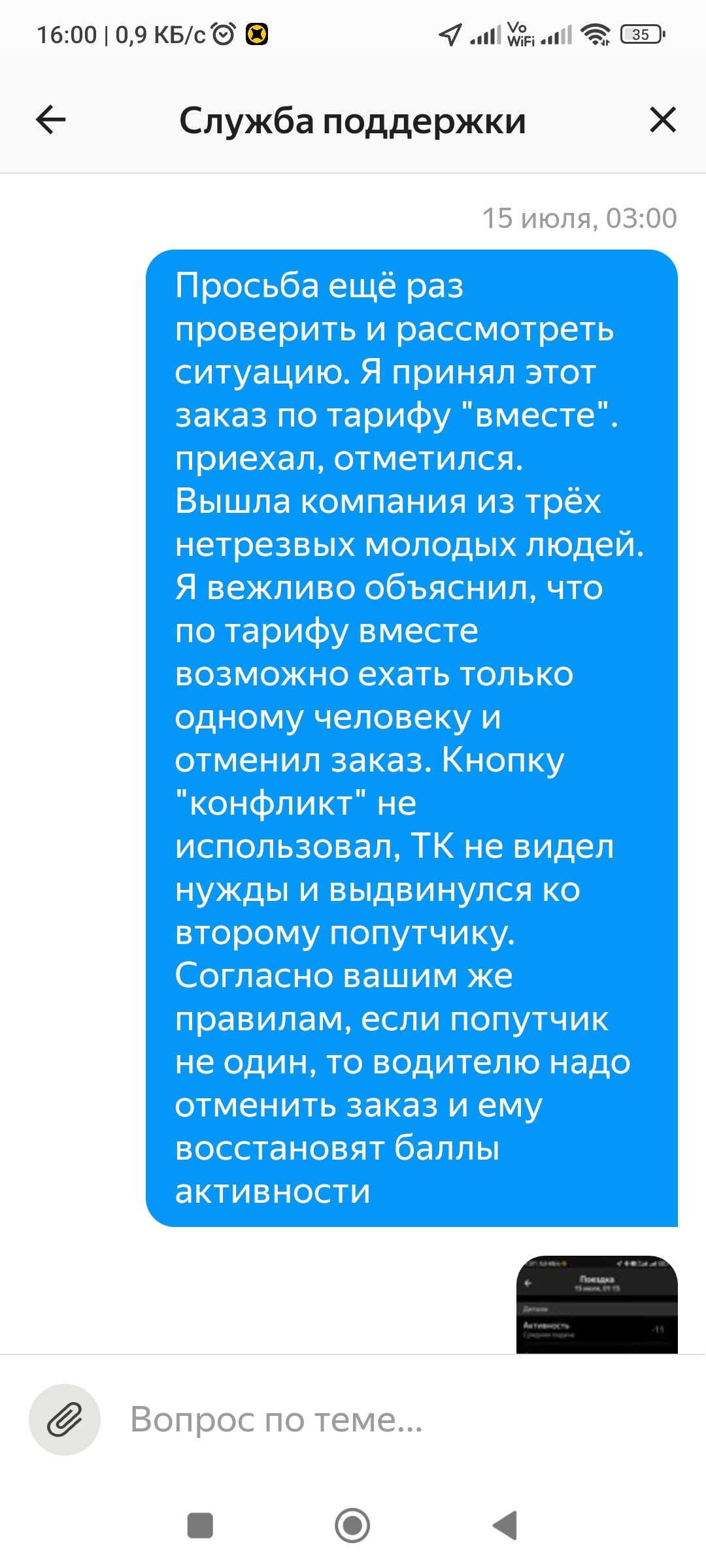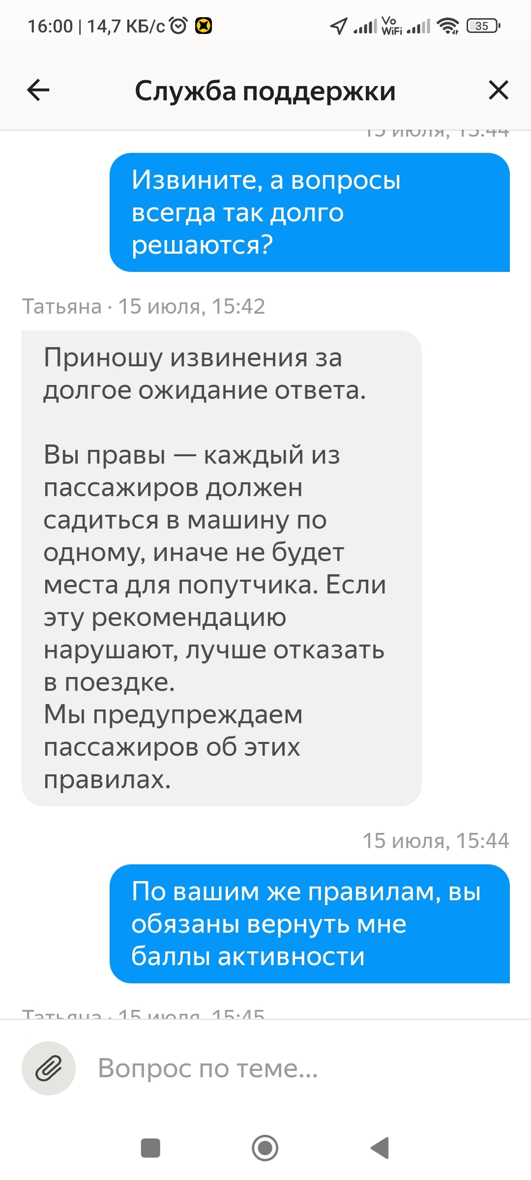 Яндекс-такси, можешь прояснить ситуацию? Со скринов из переписки со службой поддержки, думаю, все понятно. Контекст: В ряде городов запустили режим маршрутки Вместе, теперь одновременно можно выполнять 2 заказа примерно в одном направлении, но главное условие, что пассажир должен быть один. Просьба тапками закидать. (Кто может подсказать, как позвать сюда представителя Яндекса?)