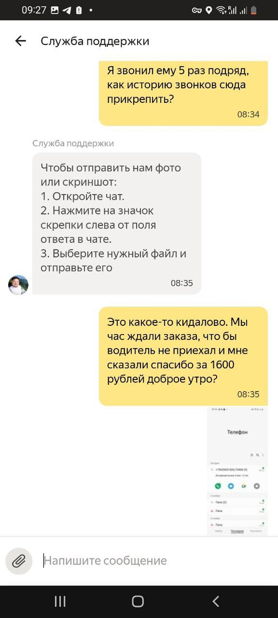 Тех поддержка просто ТОПовая. Все скрины исходящих что я звонил водителю 5 раз я предоставил, в ответ все равно "мы вам не могли дозвониться". Ну покажи исходящие что водила мне звонил? Он же не хлебушек, может скинуть скриншот? это 2 кликами делается.